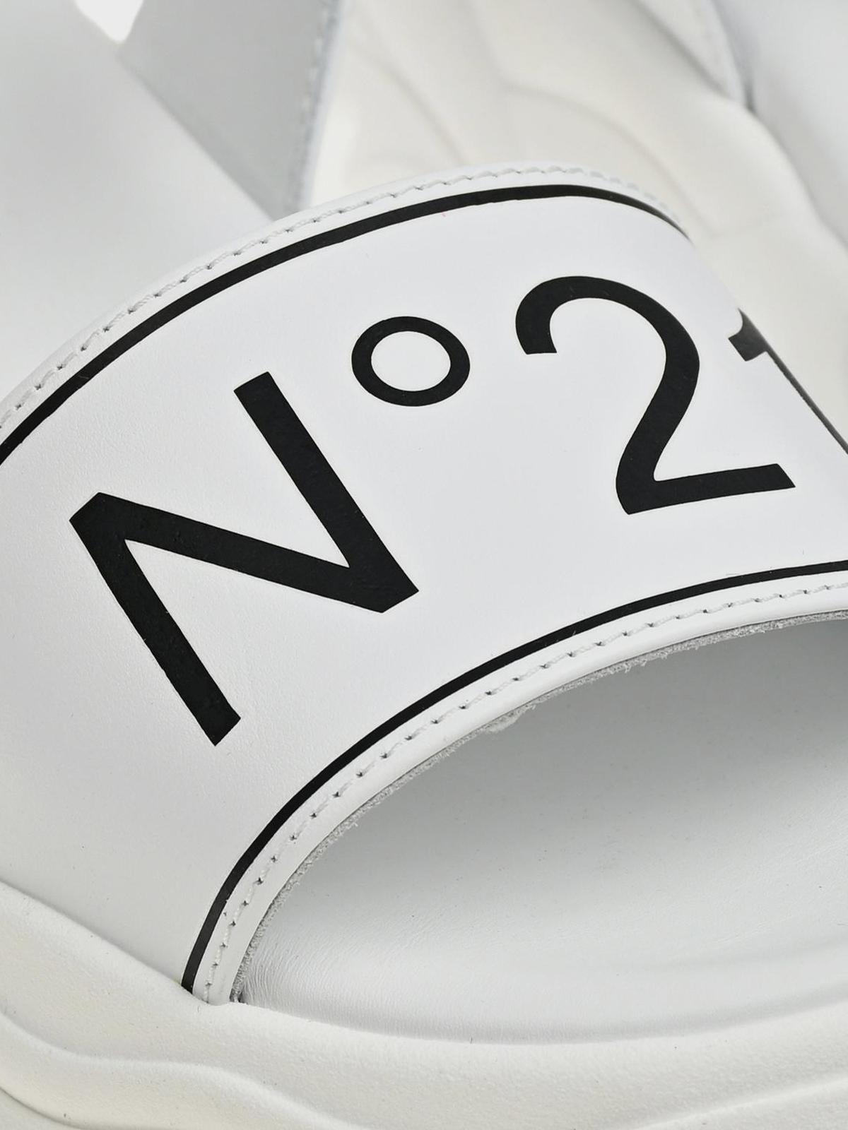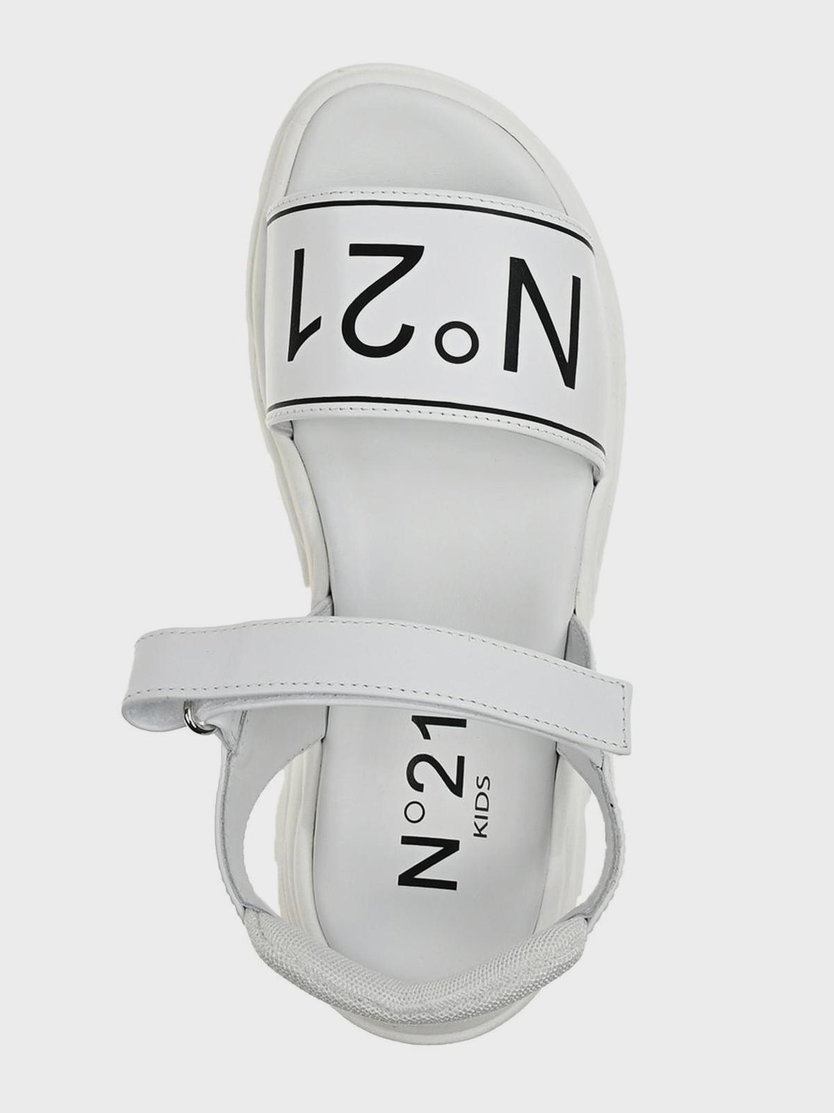 Босоножки с черным лого, белые