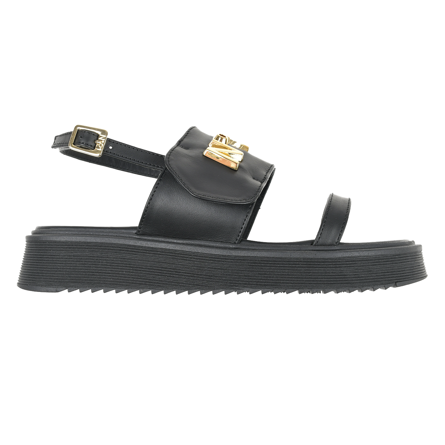 Черные босоножки с золотистым лого