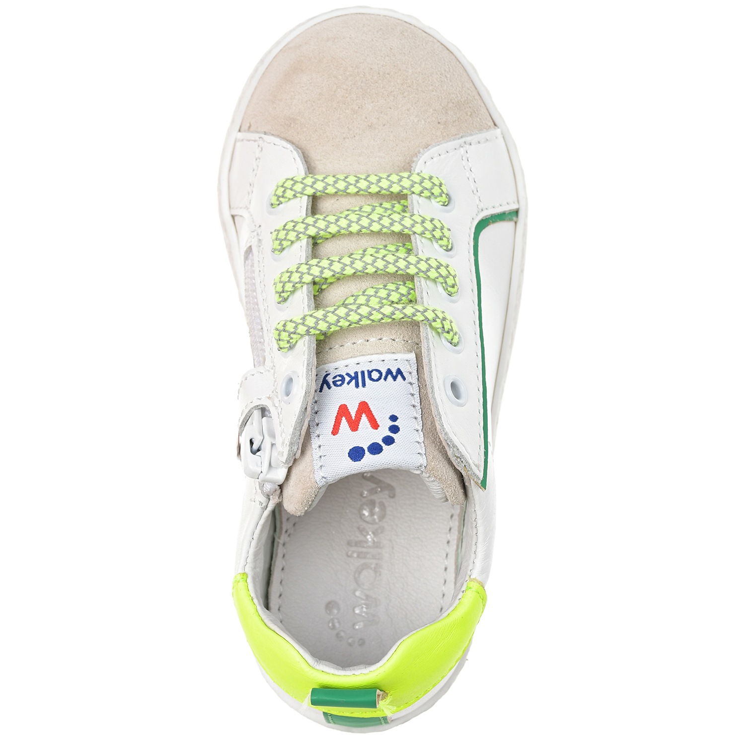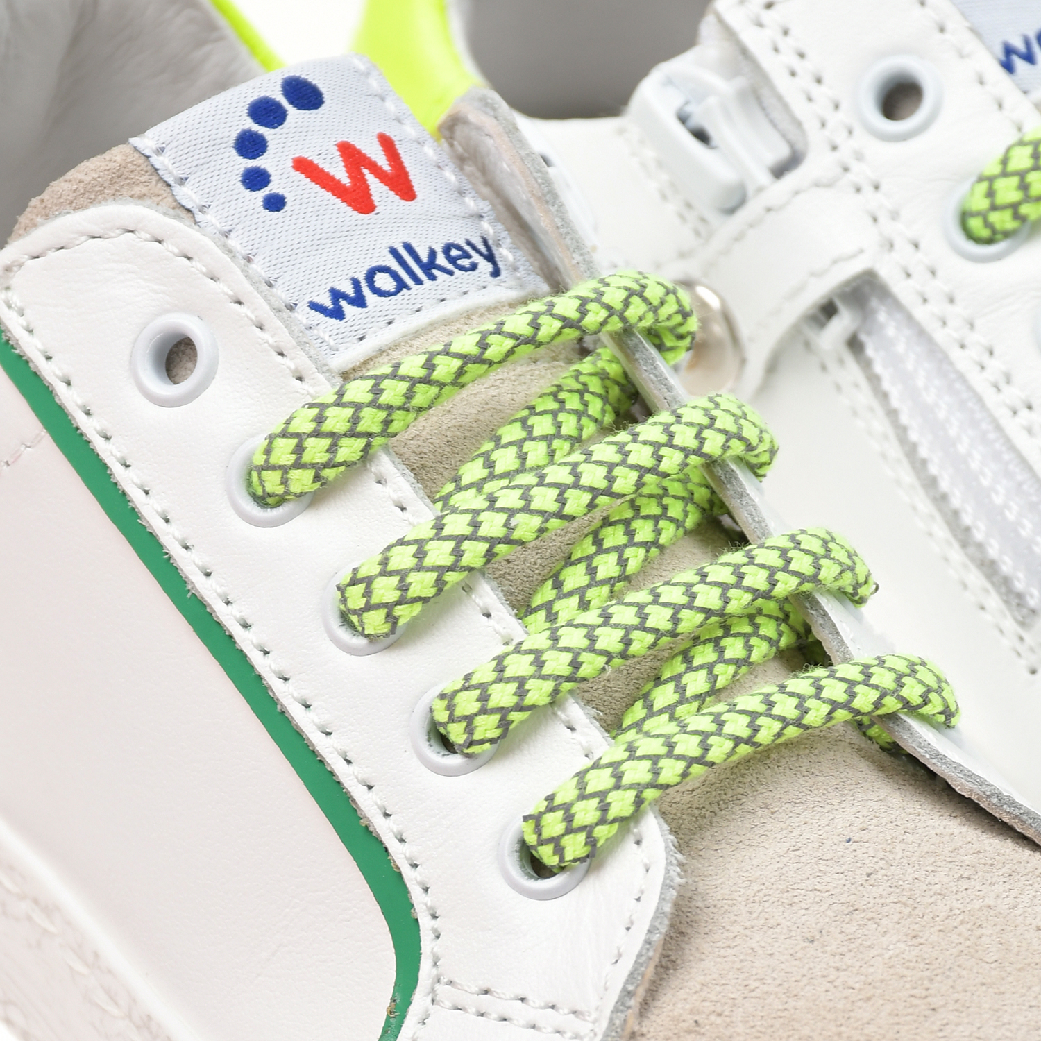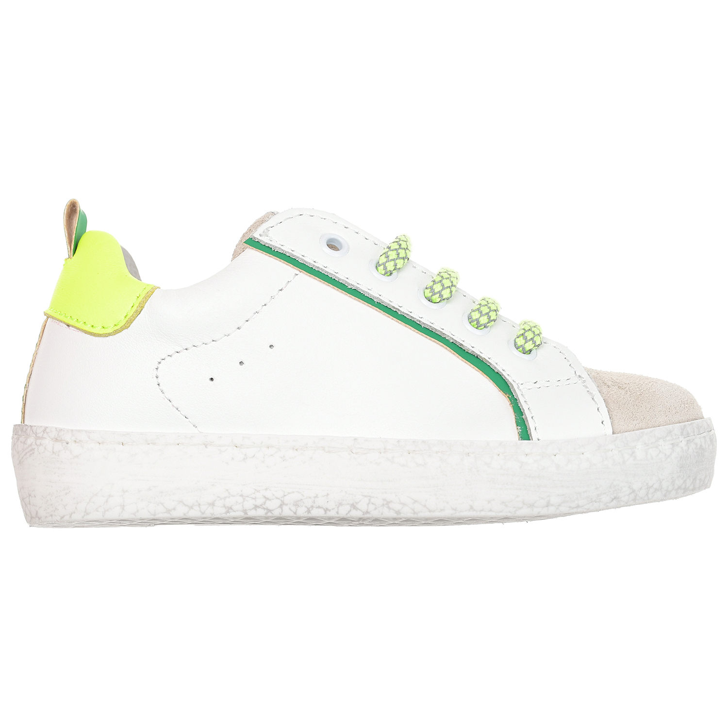 Белые кеды с зелеными шнурками