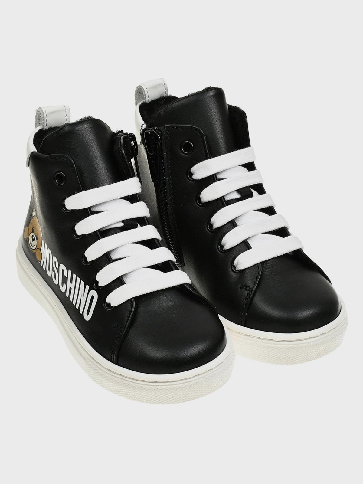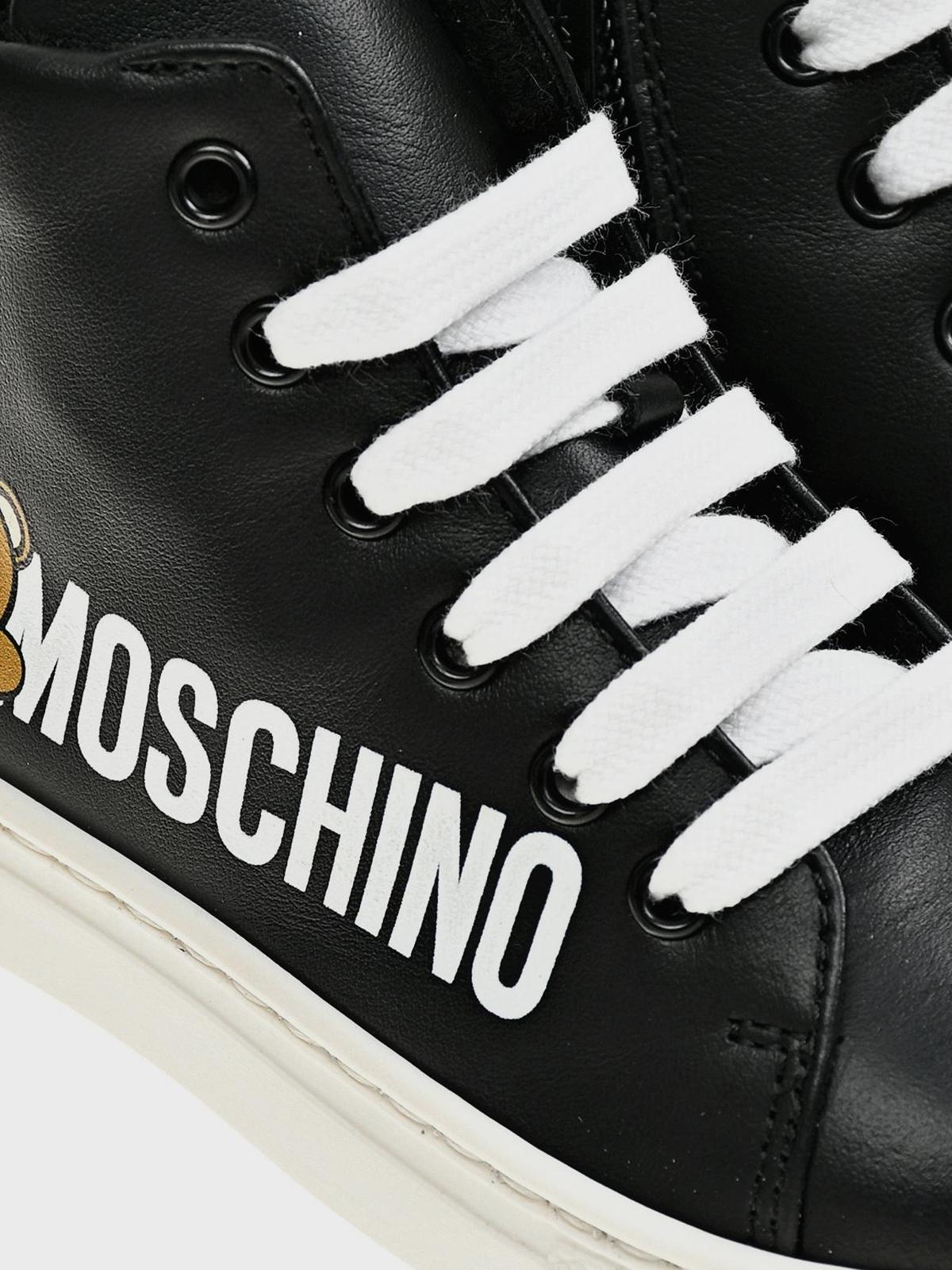 Высокие кеды с мишкой и лого сбоку, черные
