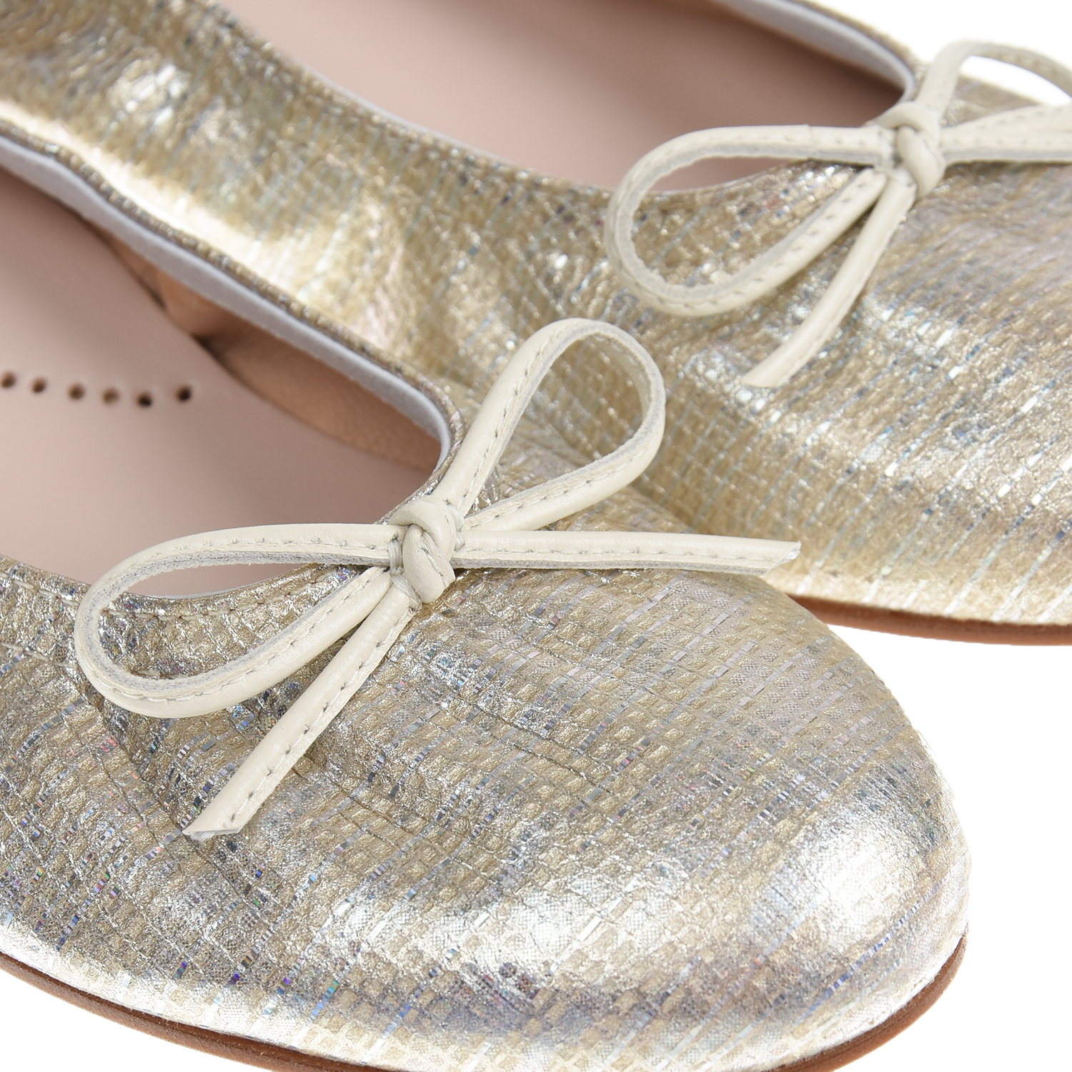 Золотистые балетки с бантом