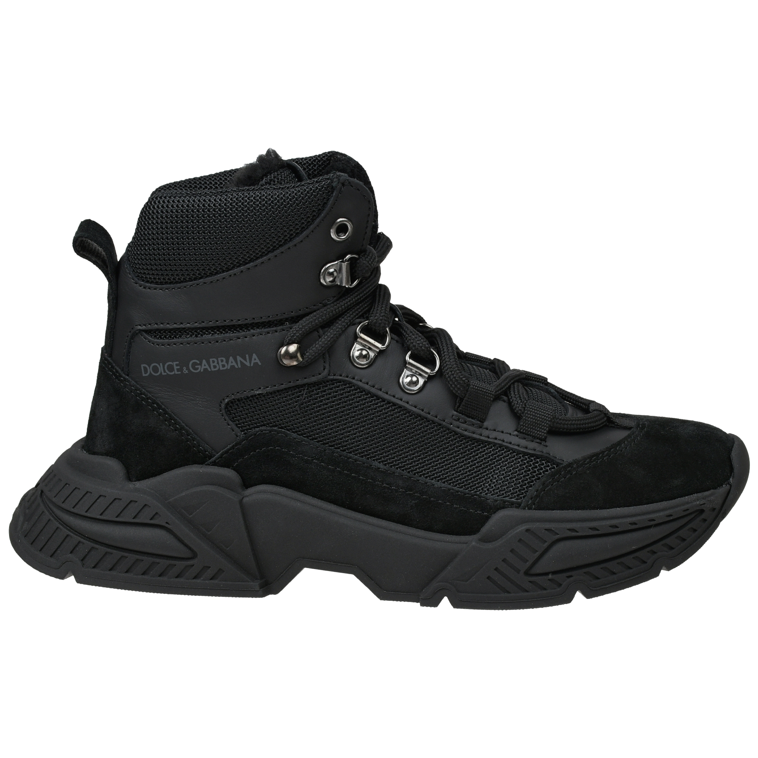 Главная / Детская обувь / Обувь для мальчиков / Кроссовки, Кеды / Dolce&Gabbana / Высокие черные кроссовки с экомехом
