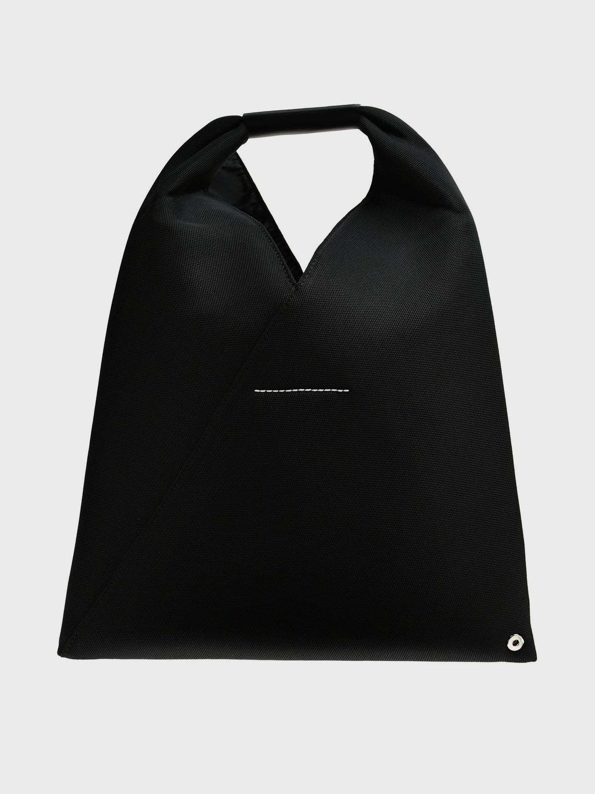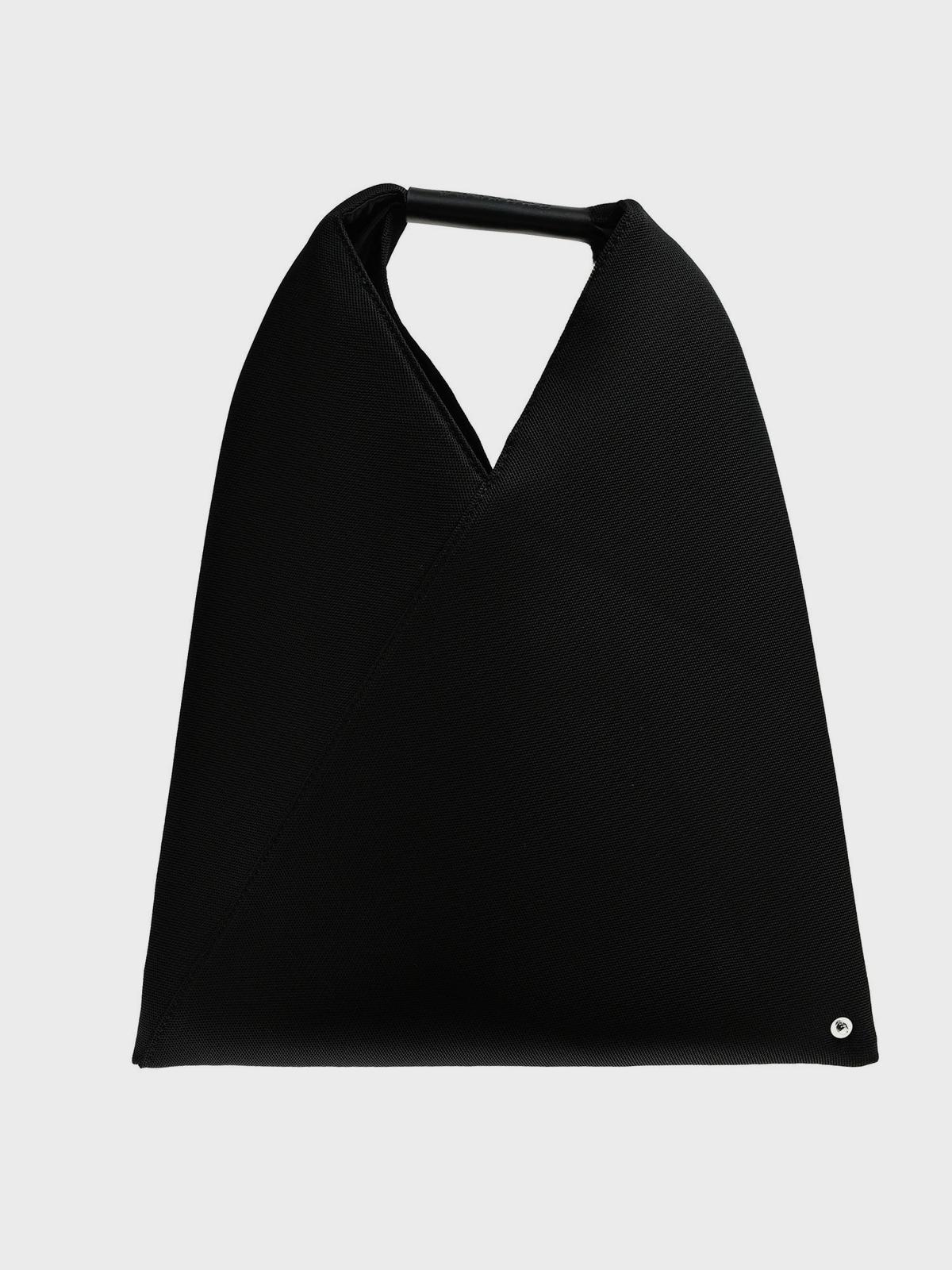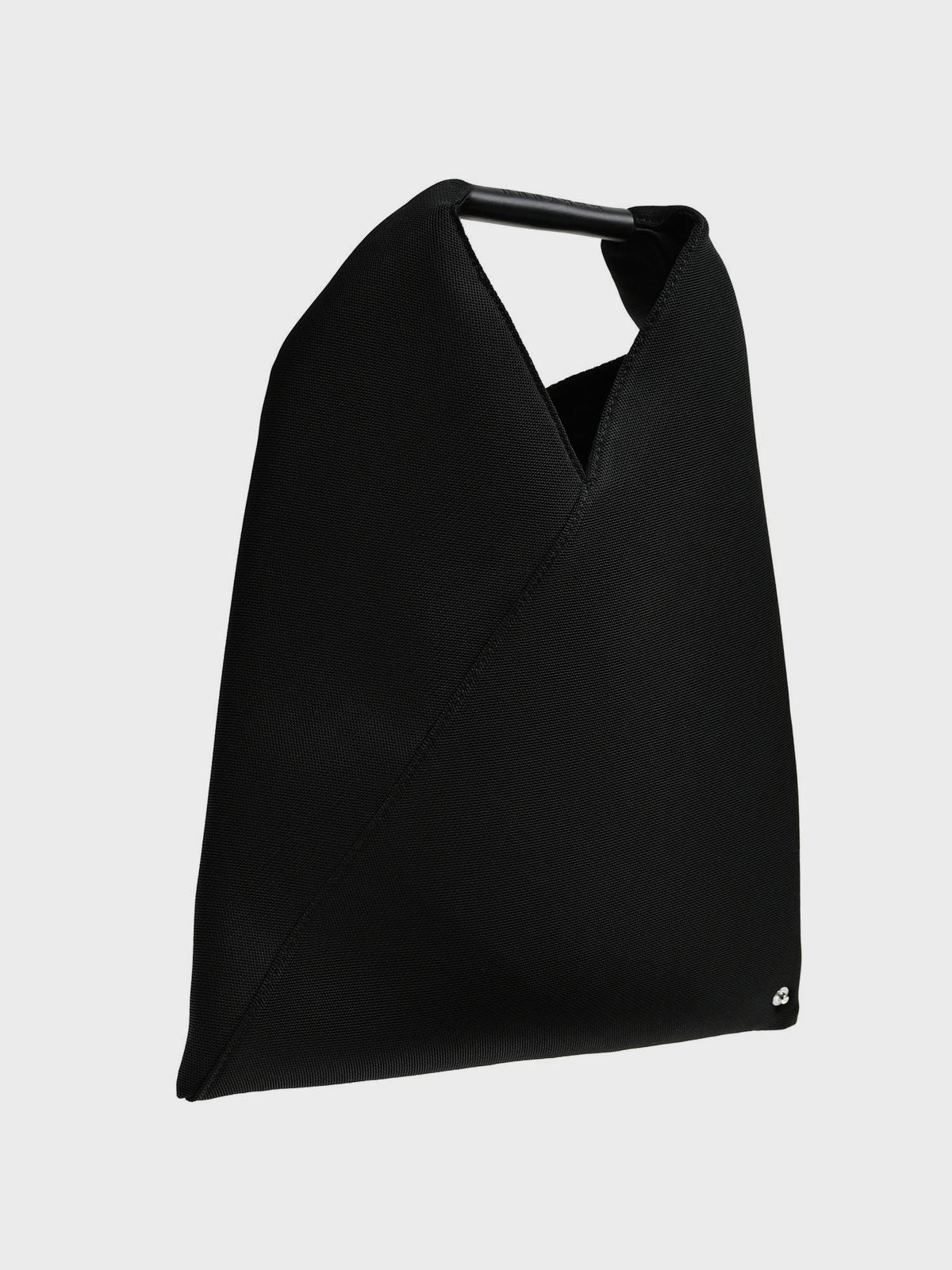 Сумка в японском стиле, черная с кожаной ручкой