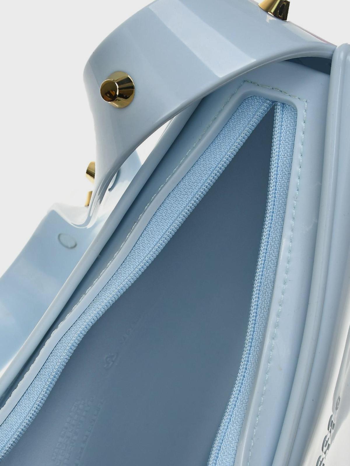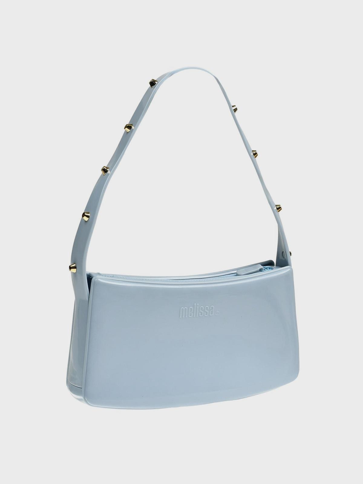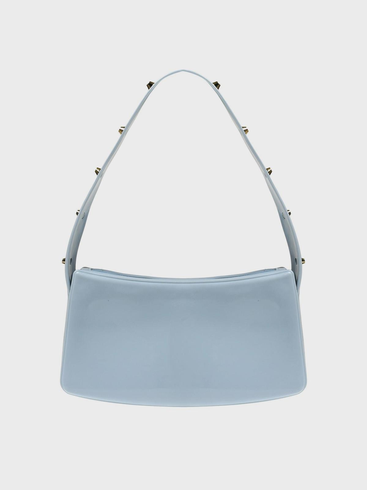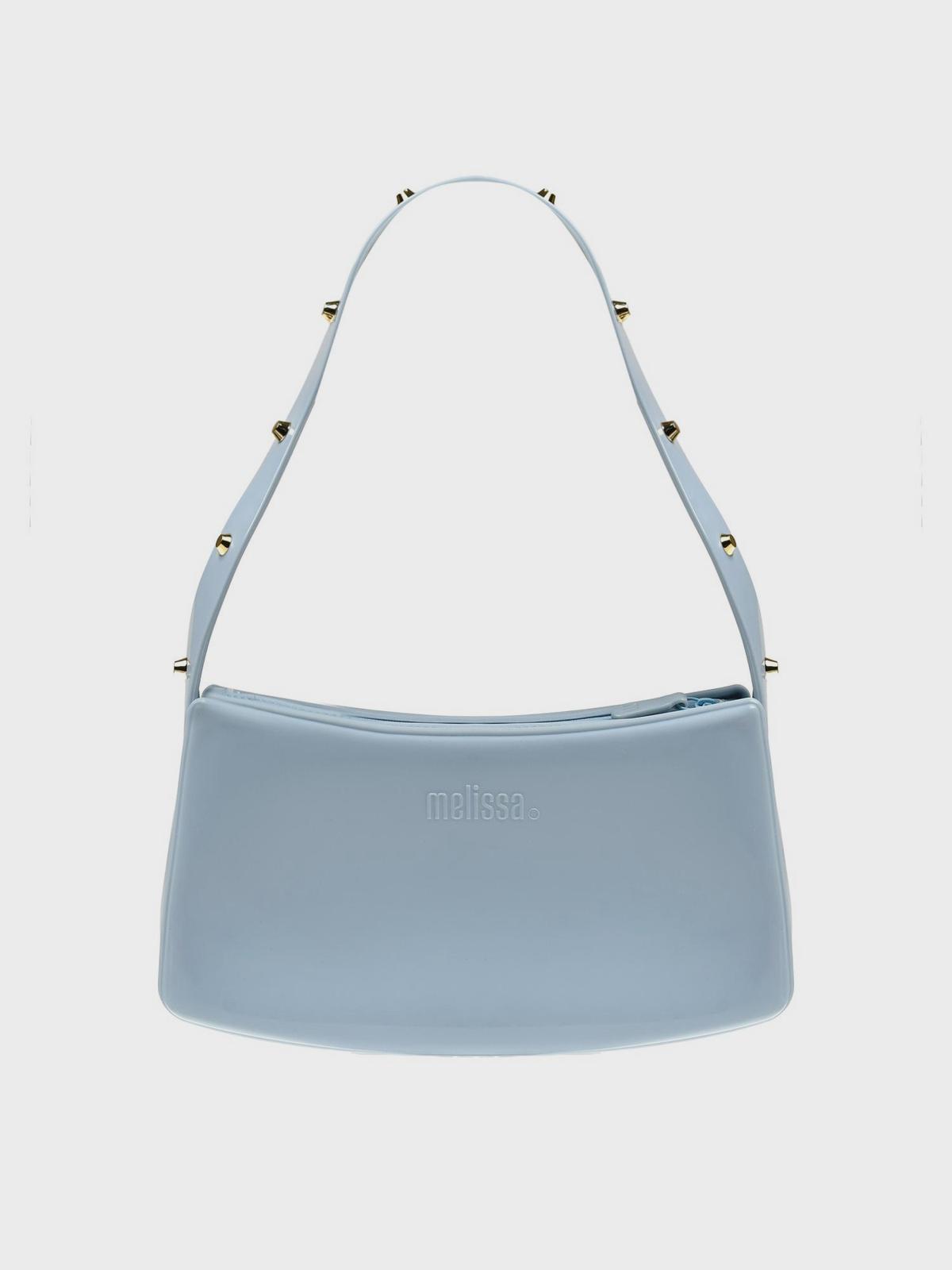 Сумка глянцевая с заклепками на ручке, голубая