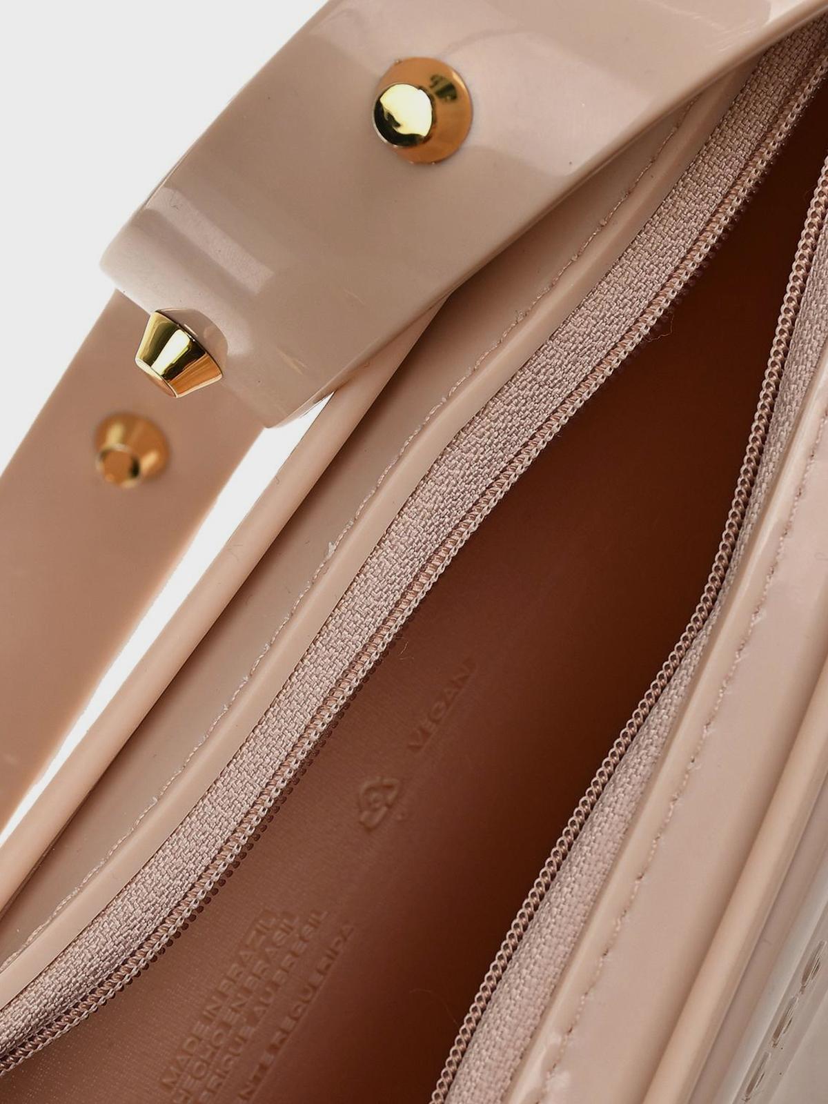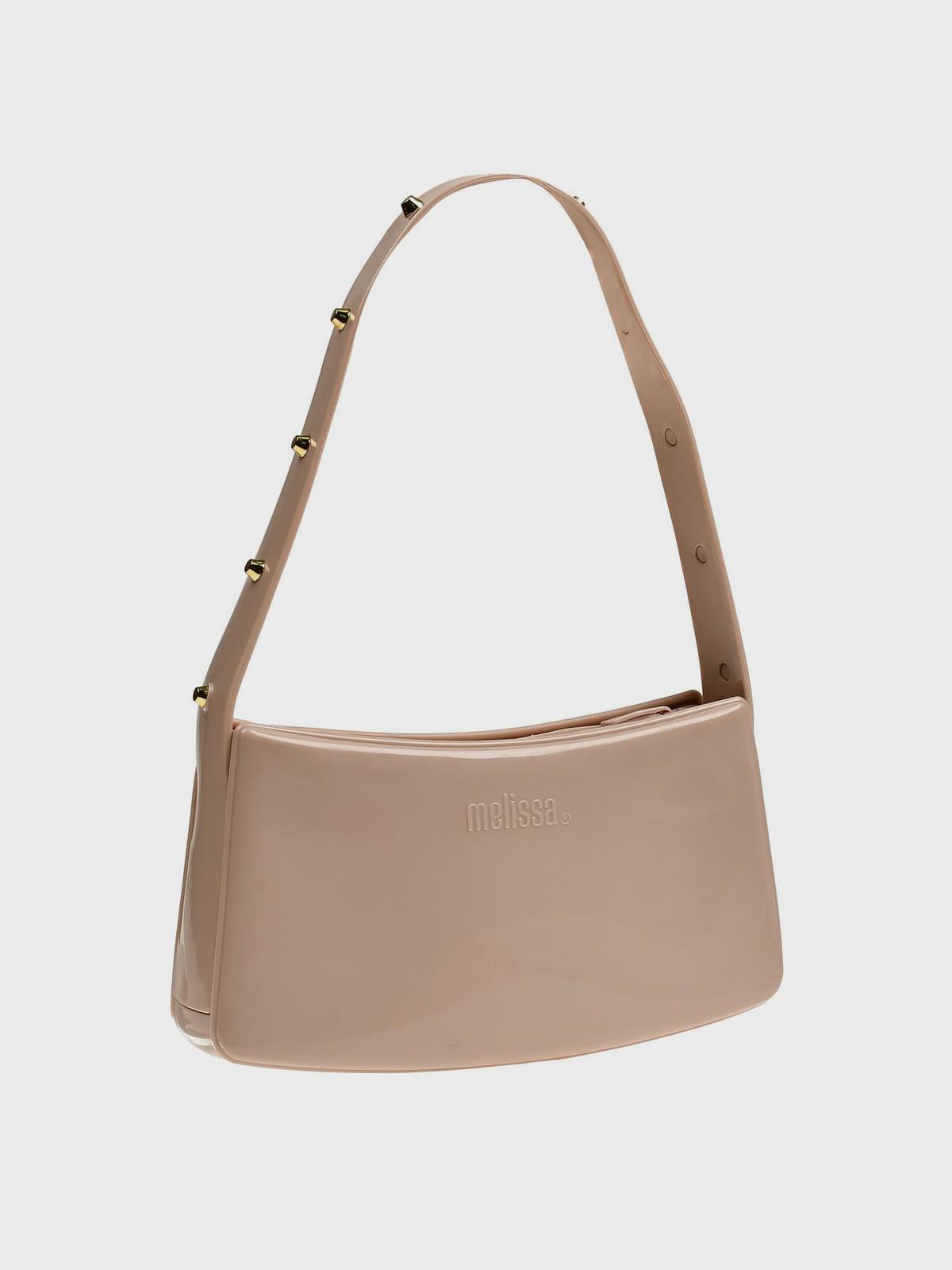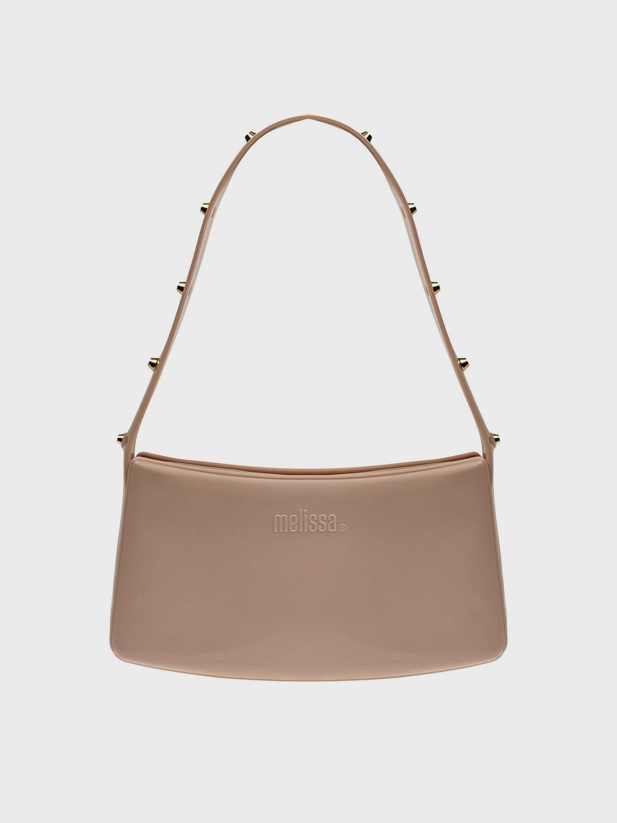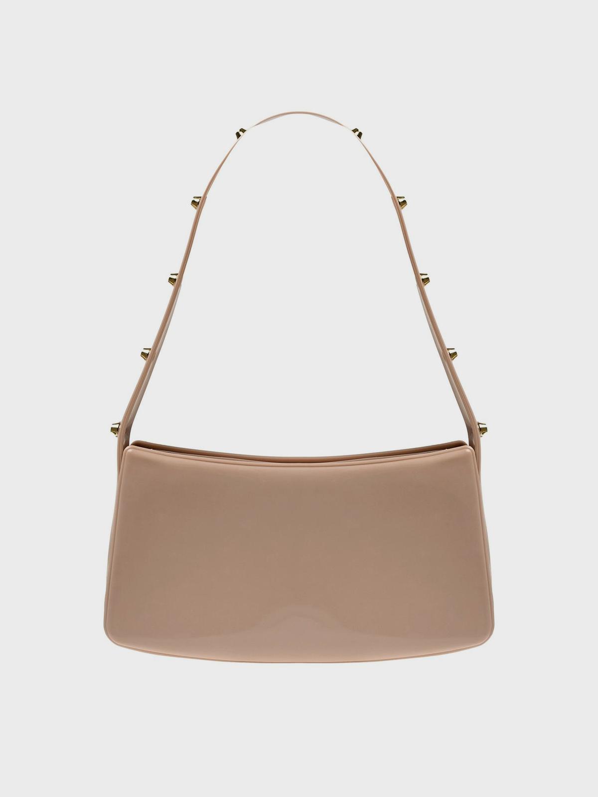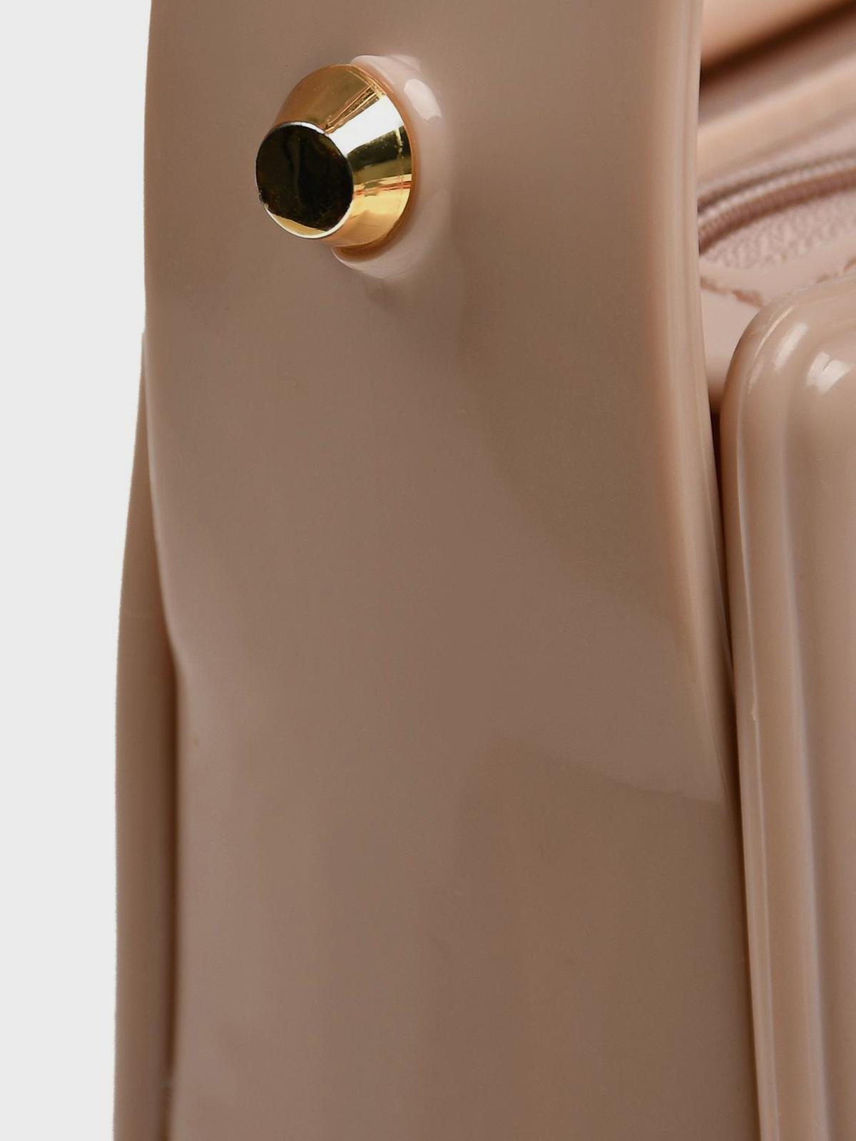 Сумка глянцевая с заклепками на ручке, кремовая