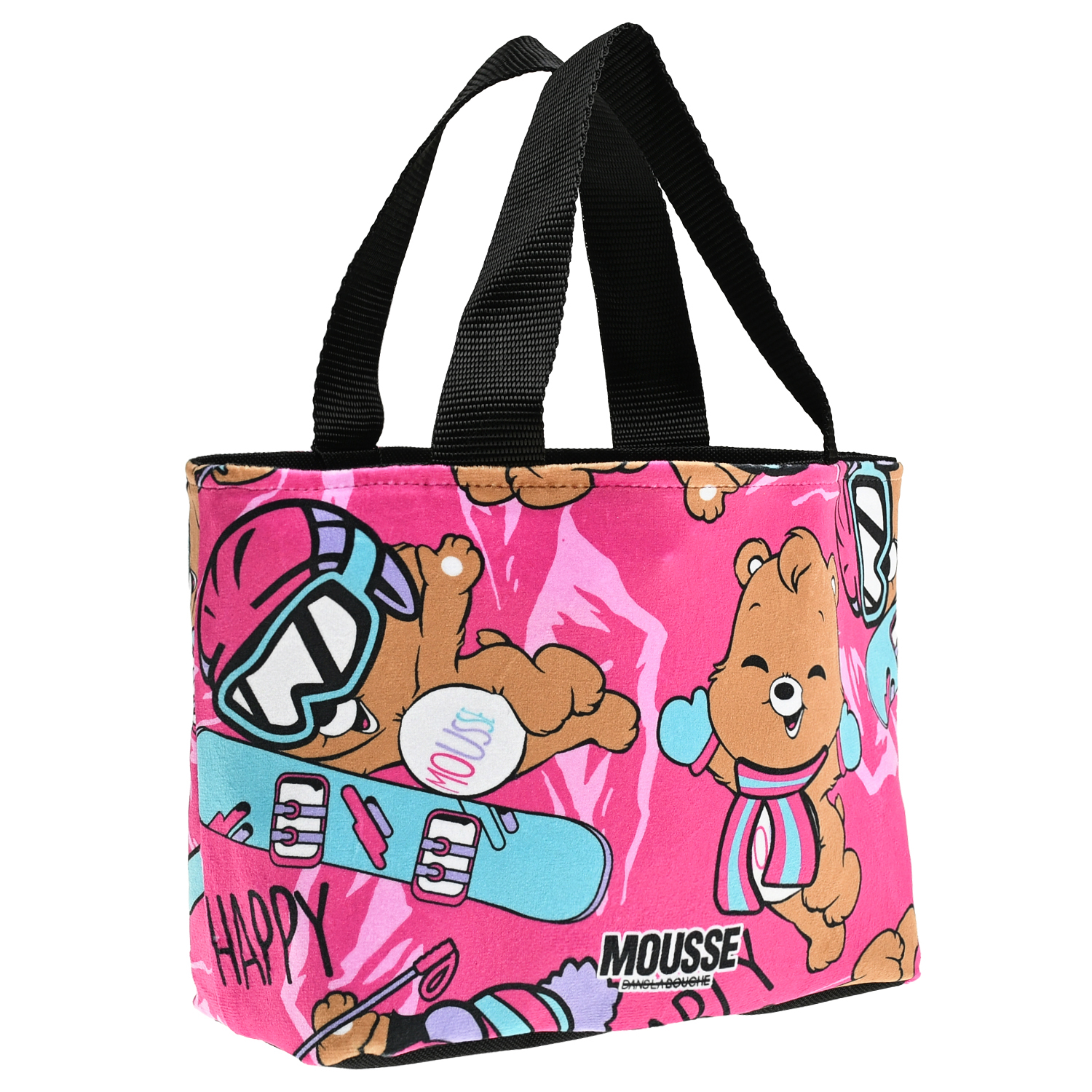 Сумка - шоппер с принтом мишки на сноубордах, темно розовый