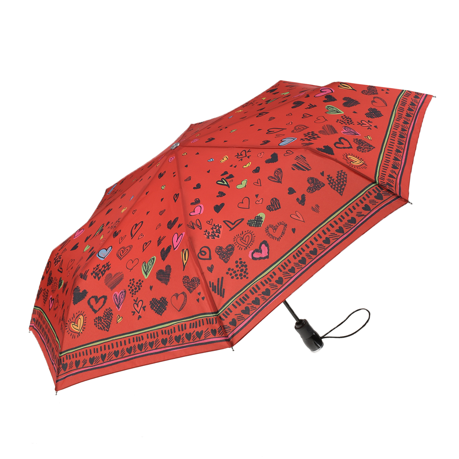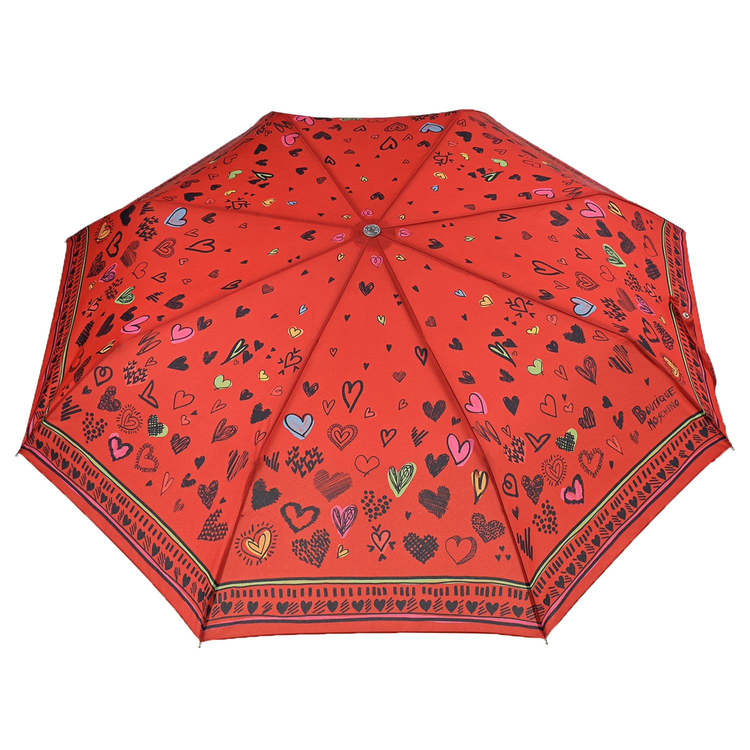 Главная / Девочки / Аксессуары / Зонты / Moschino / Красный зонт с принтом в сердечках, 30 см