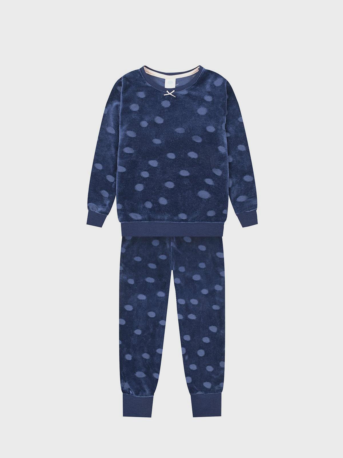 Главная / Девочки / Белье / Пижамы / Sanetta / Темно-синяя велюровая пижама с принтом в горошек