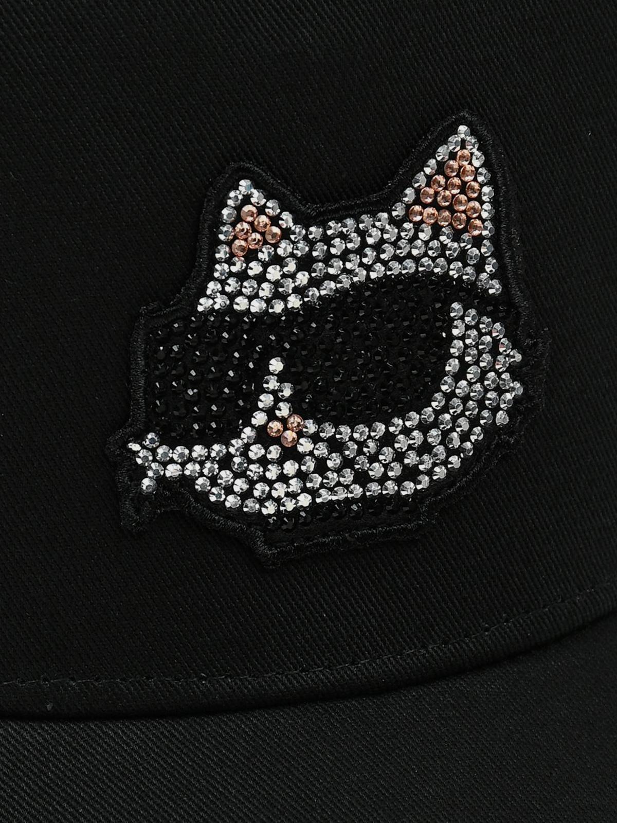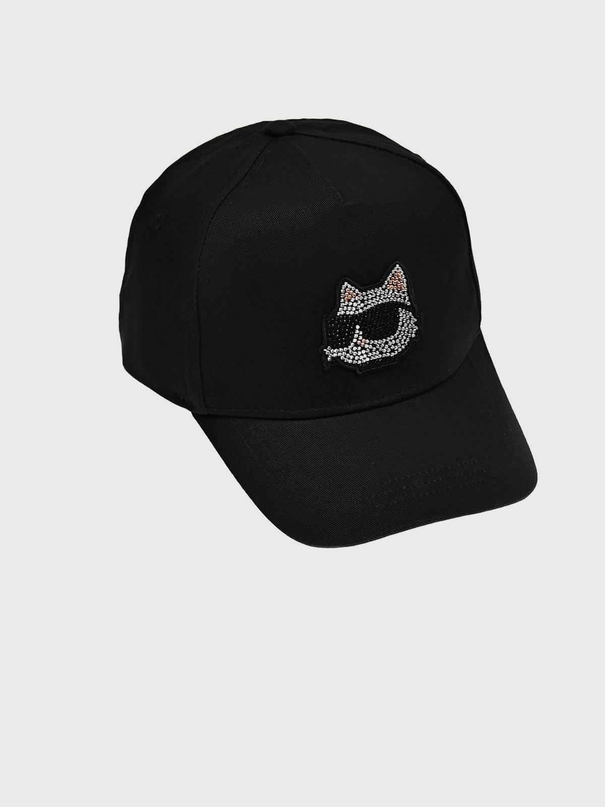 Главная / Девочки / Головные уборы / Бейсболки и кепки / Karl Lagerfeld / Бейсболка с нашивкой кошки в стразах, черная