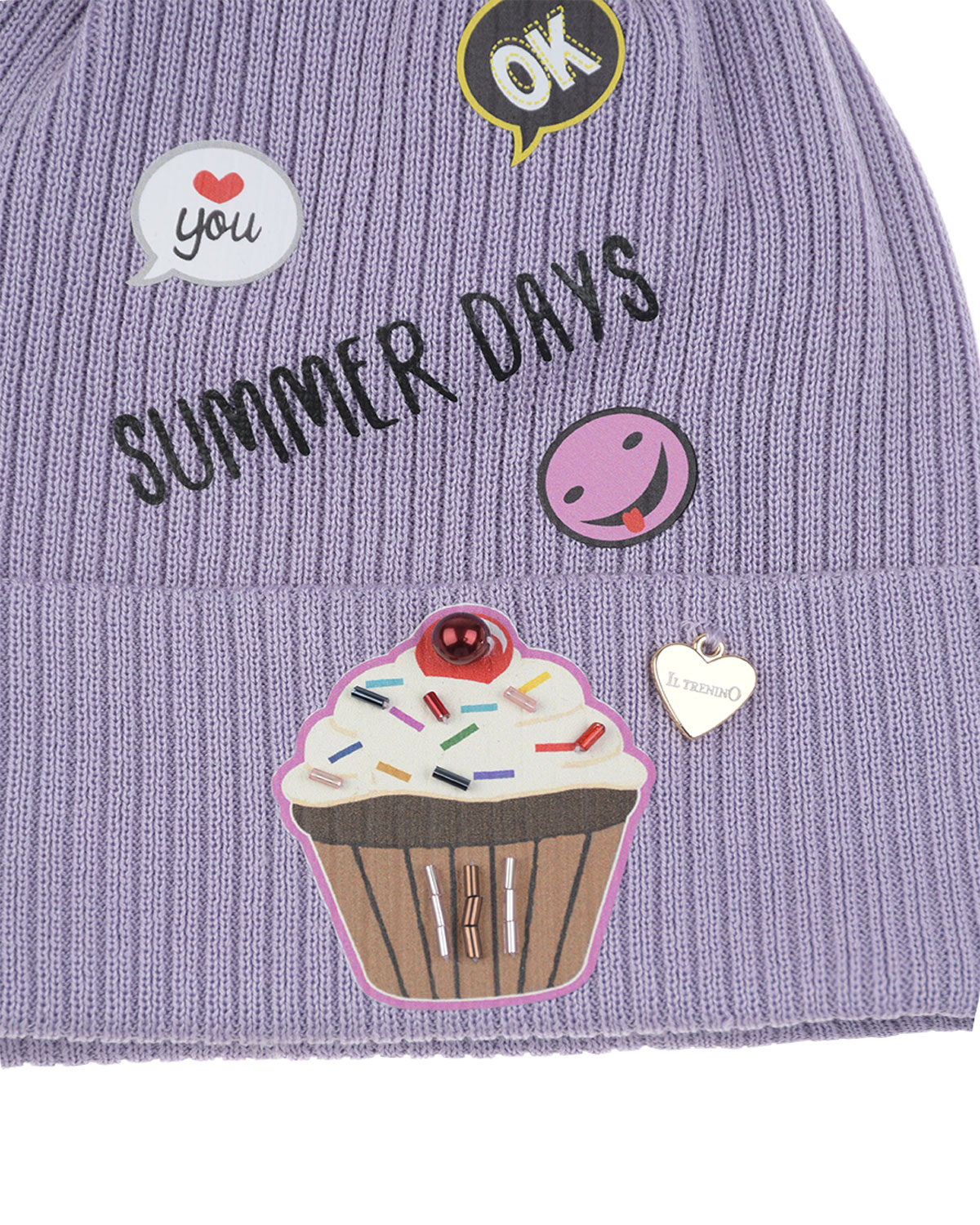 Главная / Девочки / Головные уборы / Шапки / Il Trenino / Лиловая шапка с принтом "Summer days"