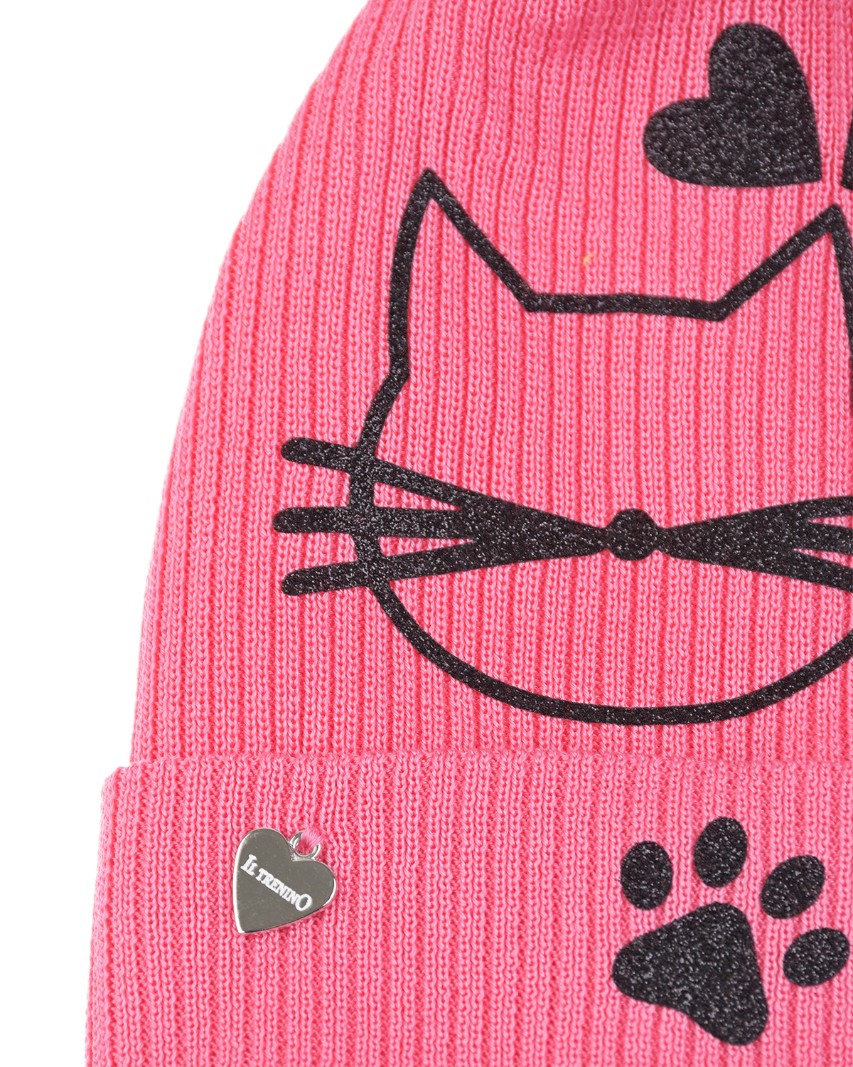 Главная / Девочки / Головные уборы / Шапки / Il Trenino / Розовая шапка с черным принтом "котик и лапки"