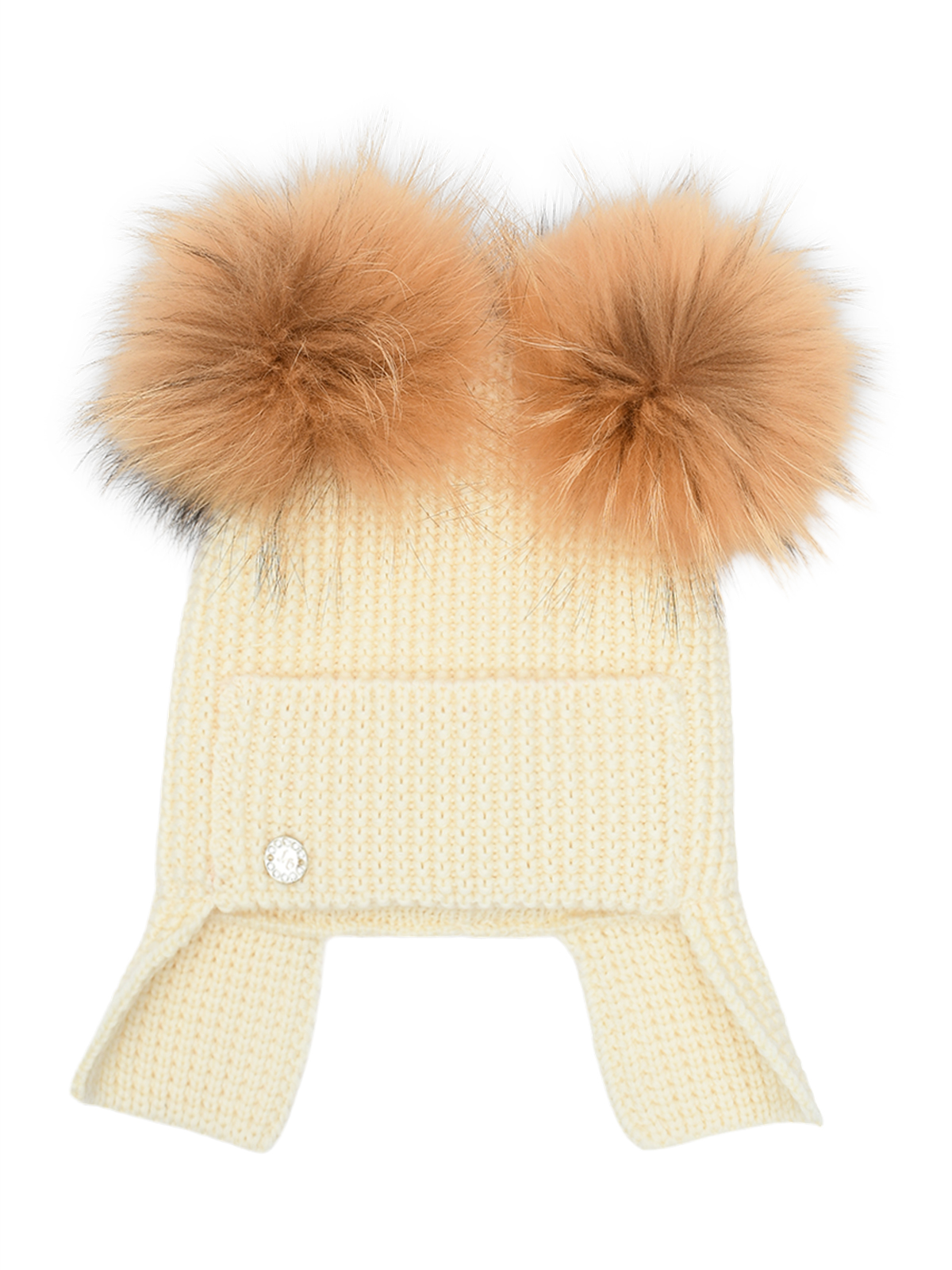 Главная / Девочки / Головные уборы / Шапки / Joli Bebe / Шапка с двумя помпонами, кремовая