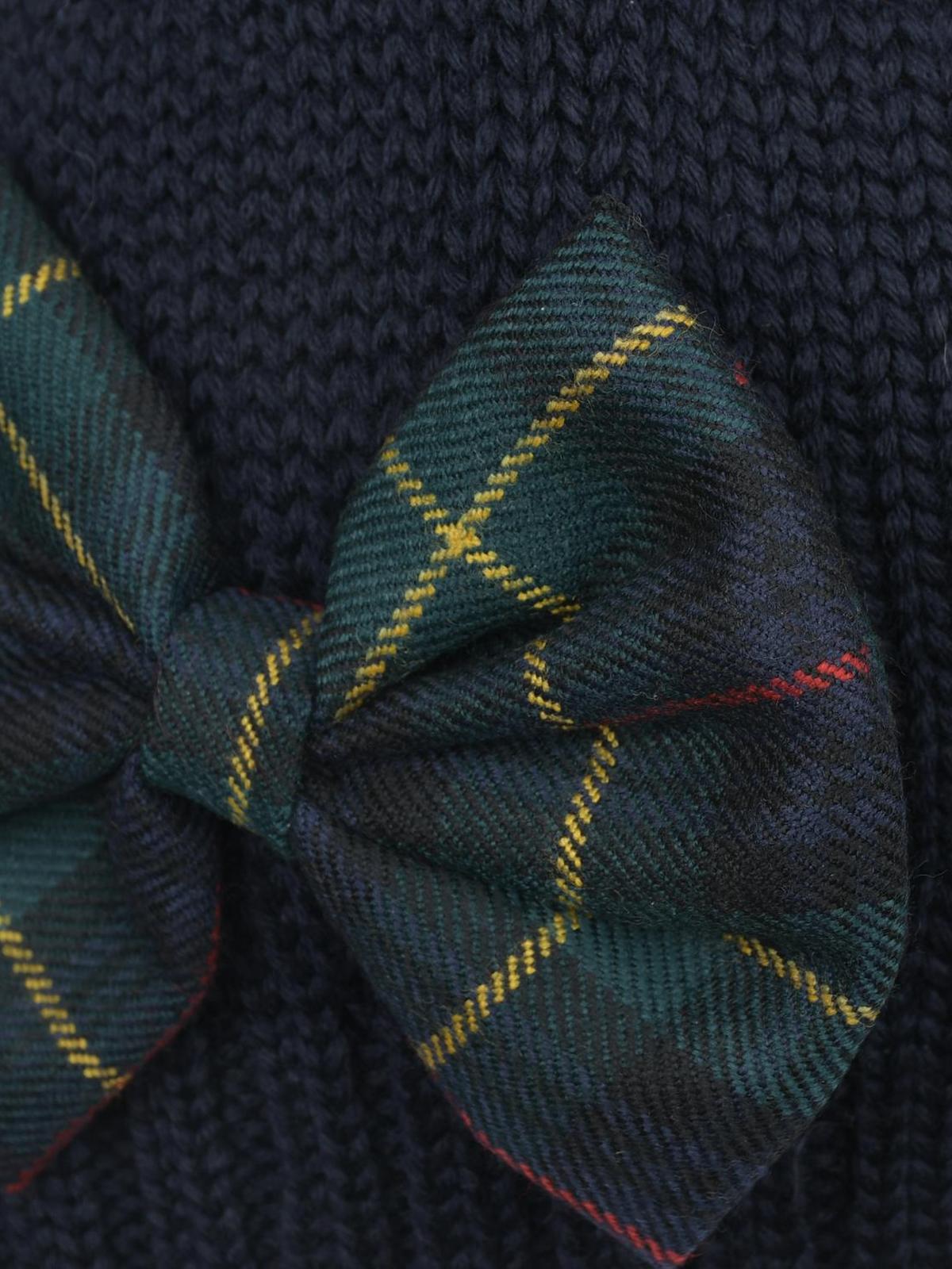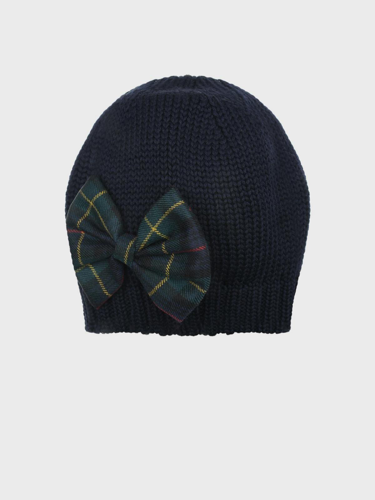 Главная / Девочки / Головные уборы / Шапки / Catya / Темно-синяя шапка с бантом в клетку
