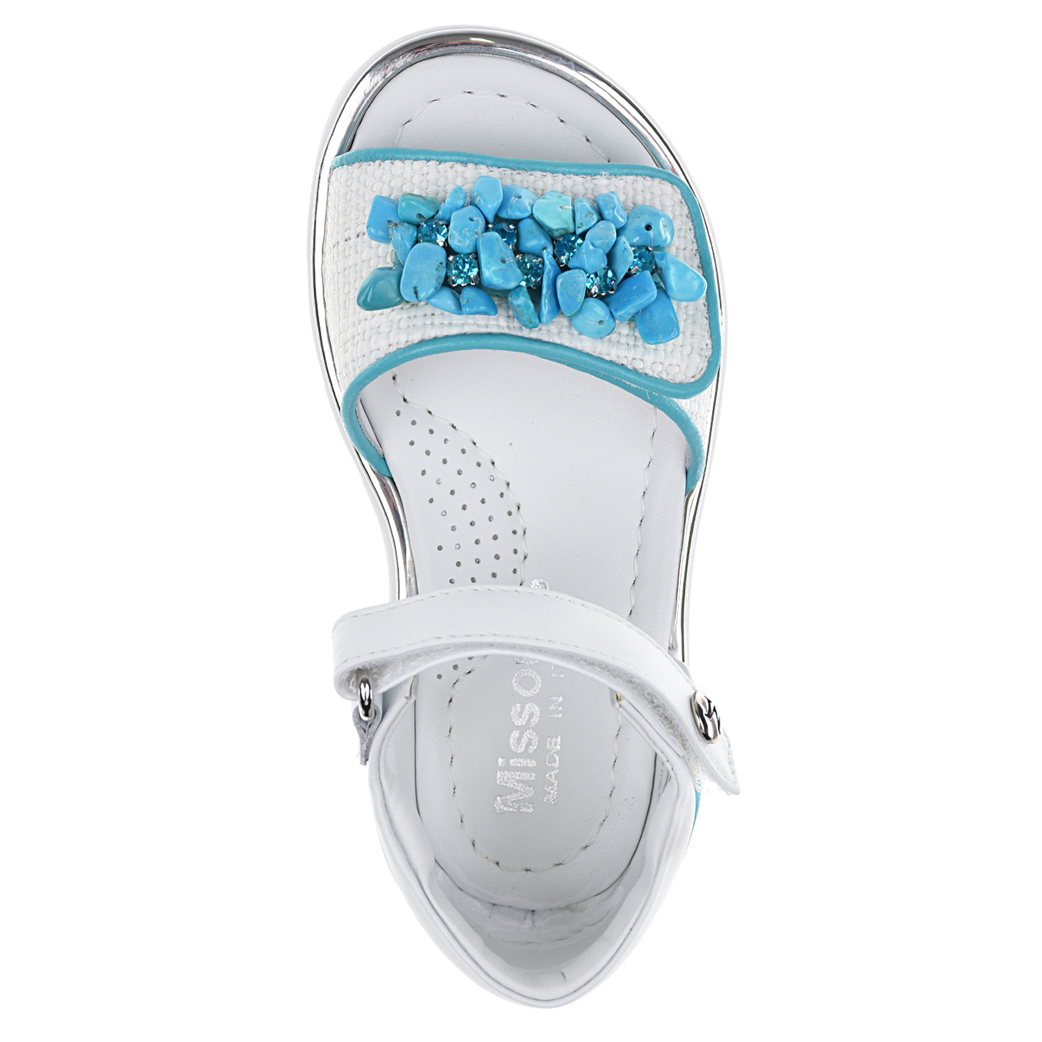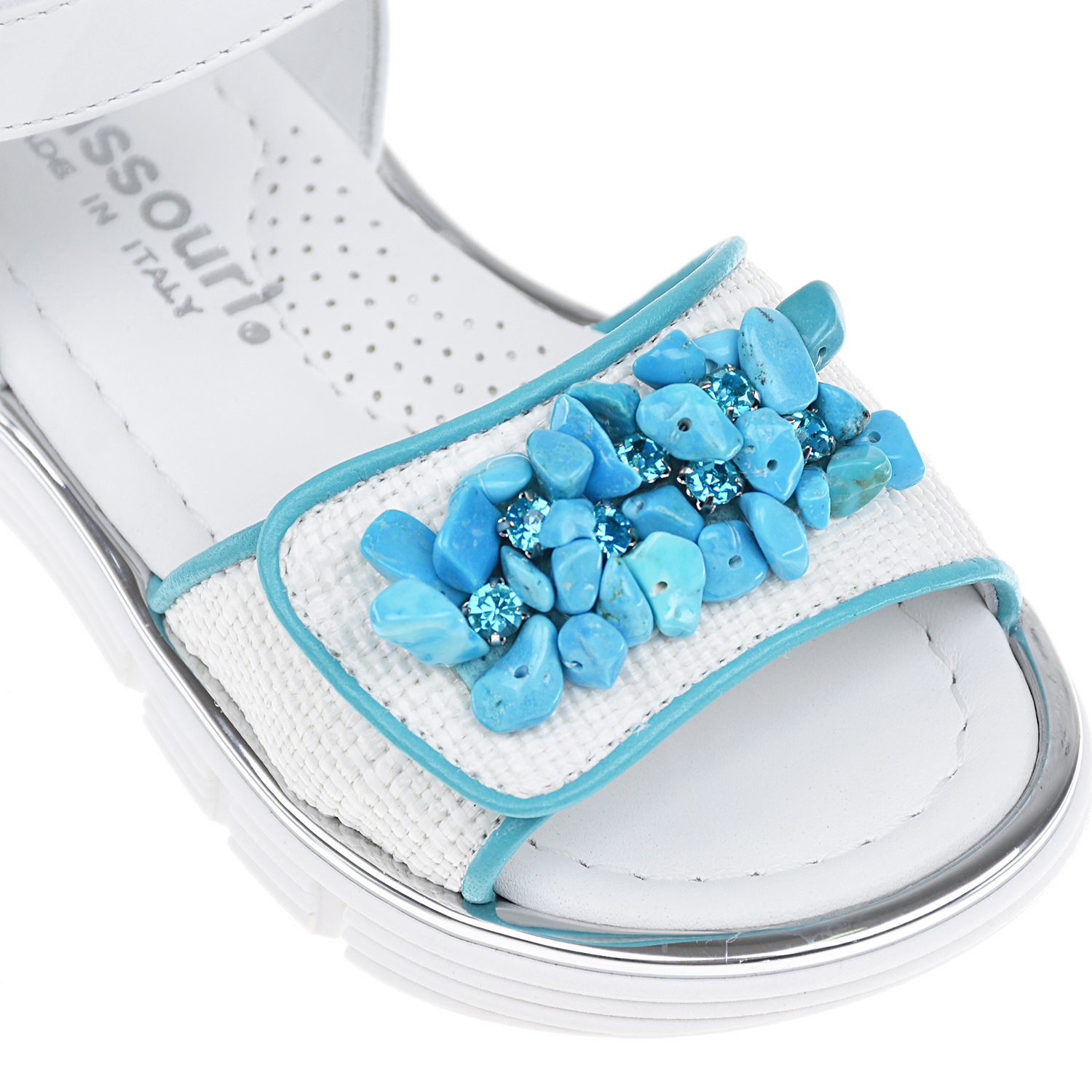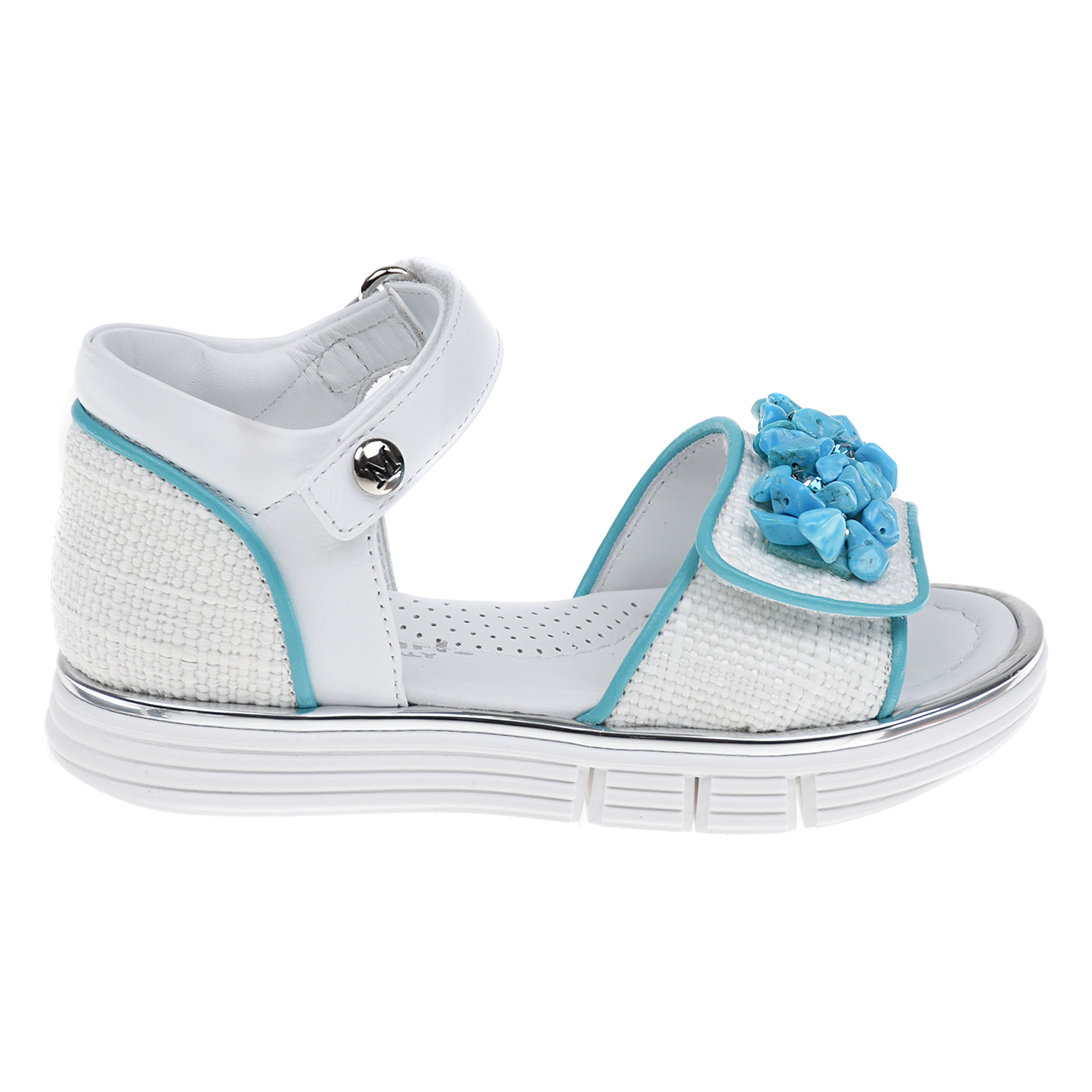 Главная / Девочки / Обувь / Босоножки, Сандалии / Missouri / Белые босоножки с бирюзовыми бусинами