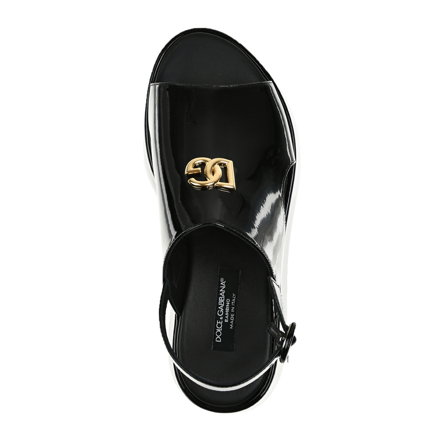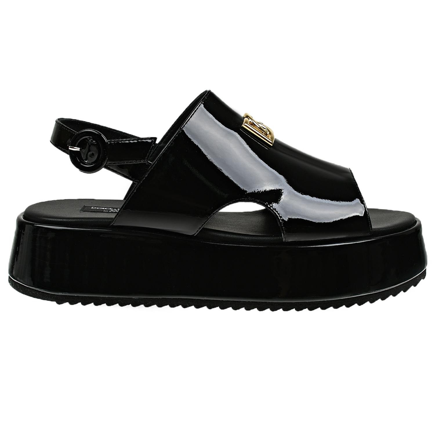 Босоножки лакированные на платформе с логотипом, черные