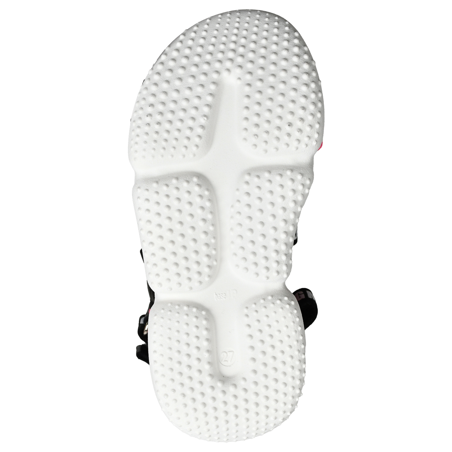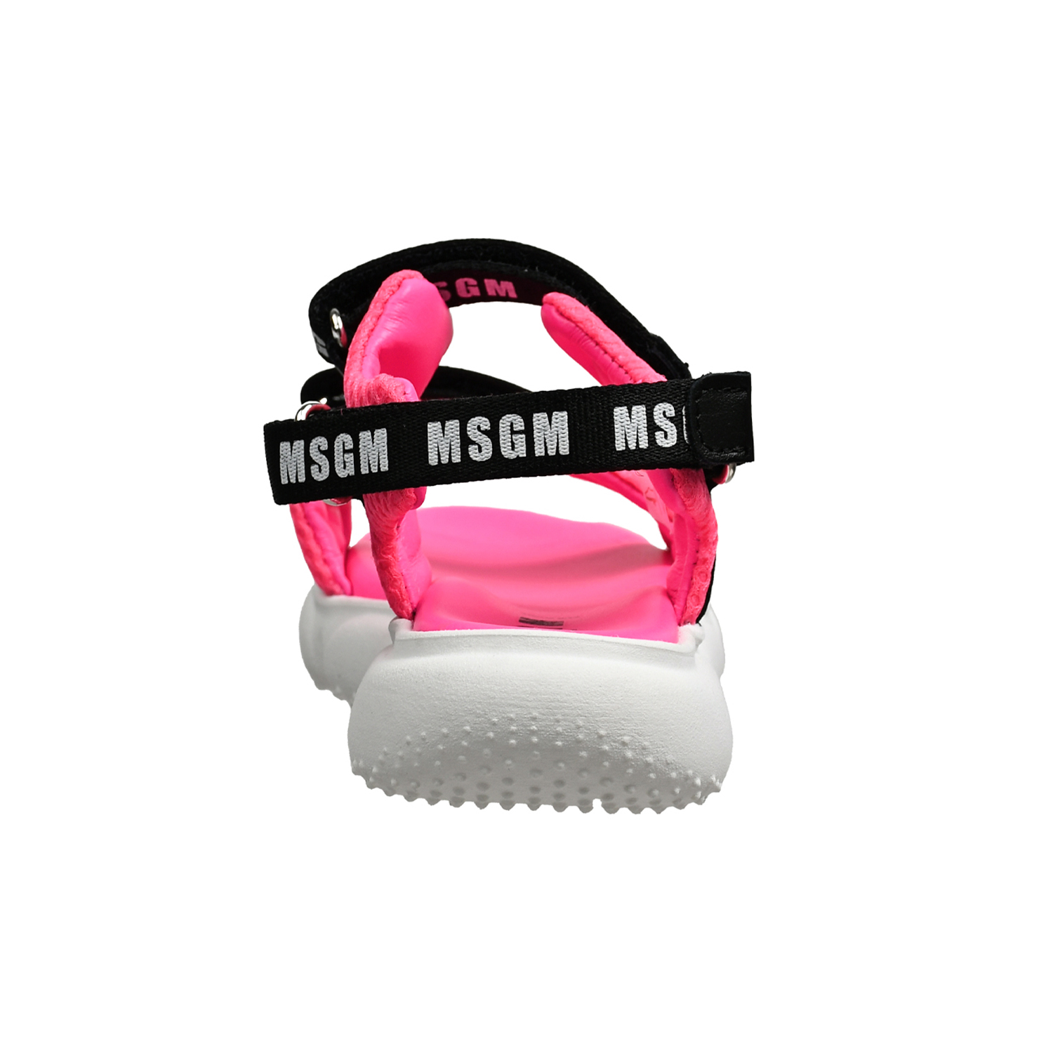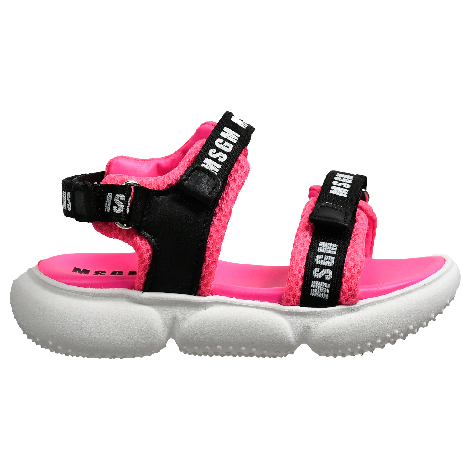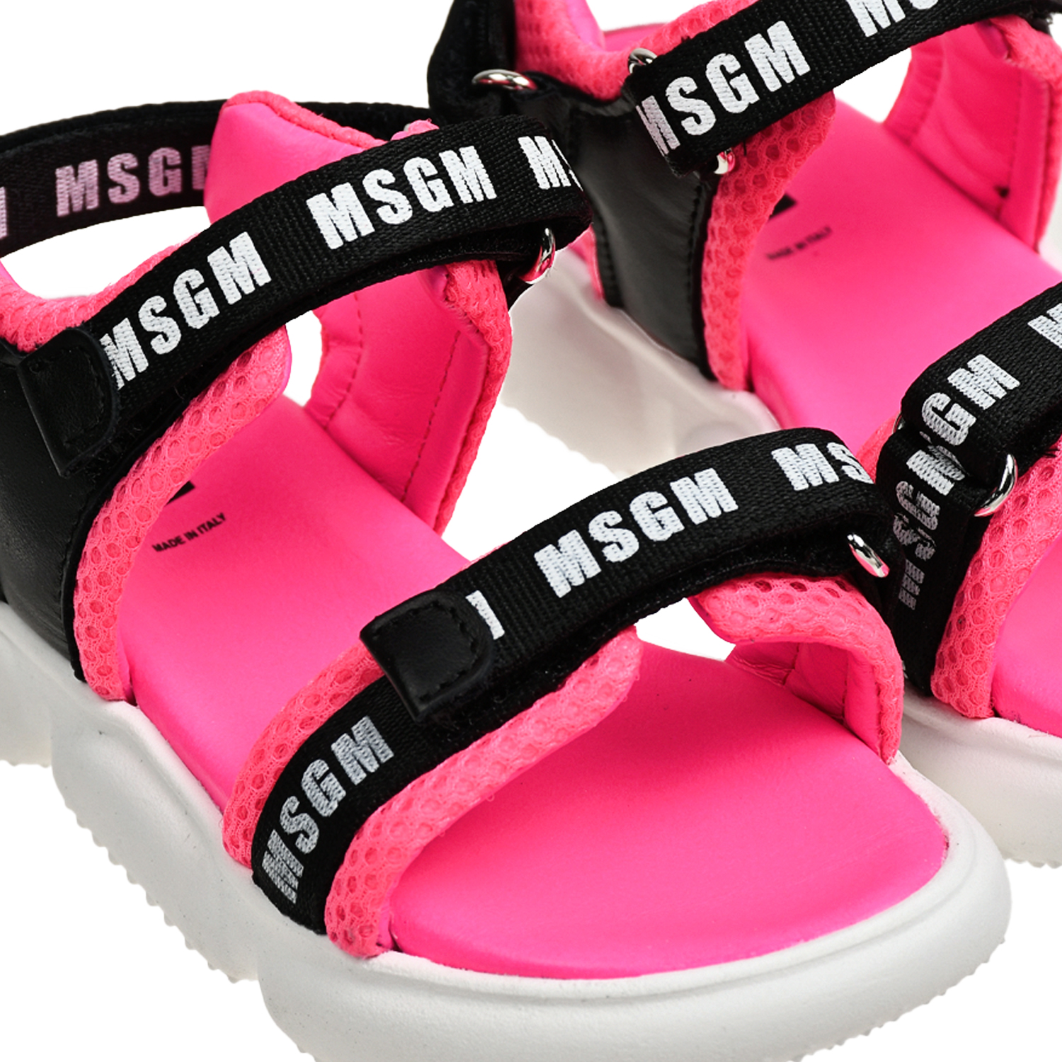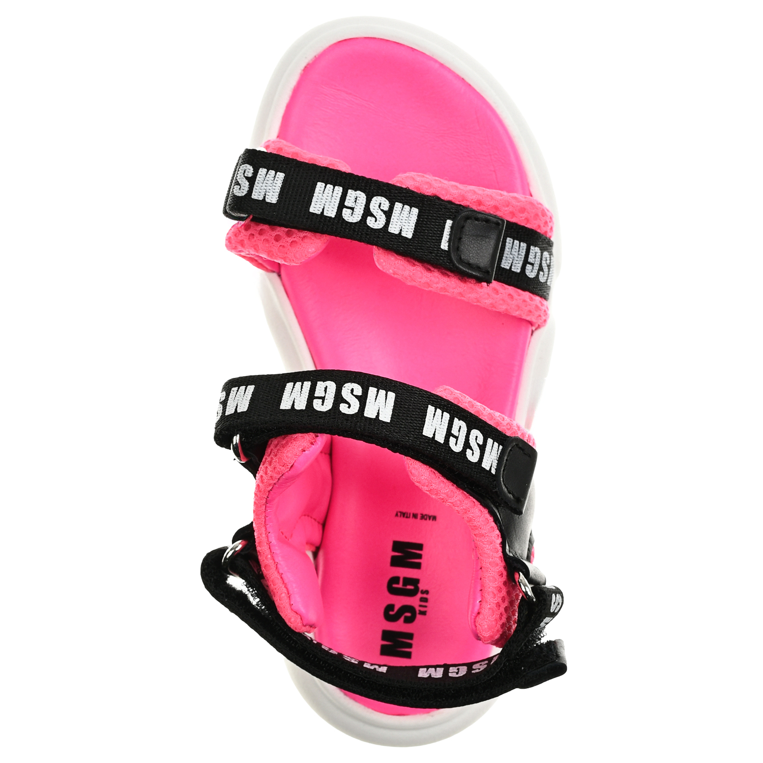 Босоножки с черными лентами логотипом, фуксия