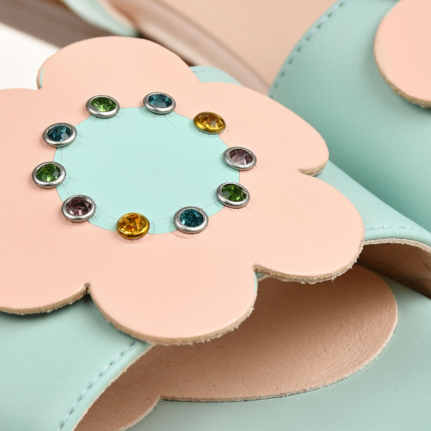 Главная / Девочки / Обувь / Босоножки, Сандалии / Stella McCartney / Босоножки с розовым цветком, светло-голубые