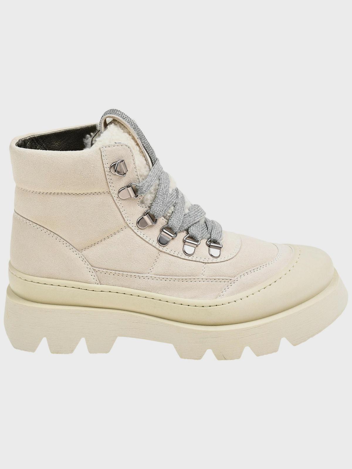 Ботинки на шнуровке с меховым язычком, молочные