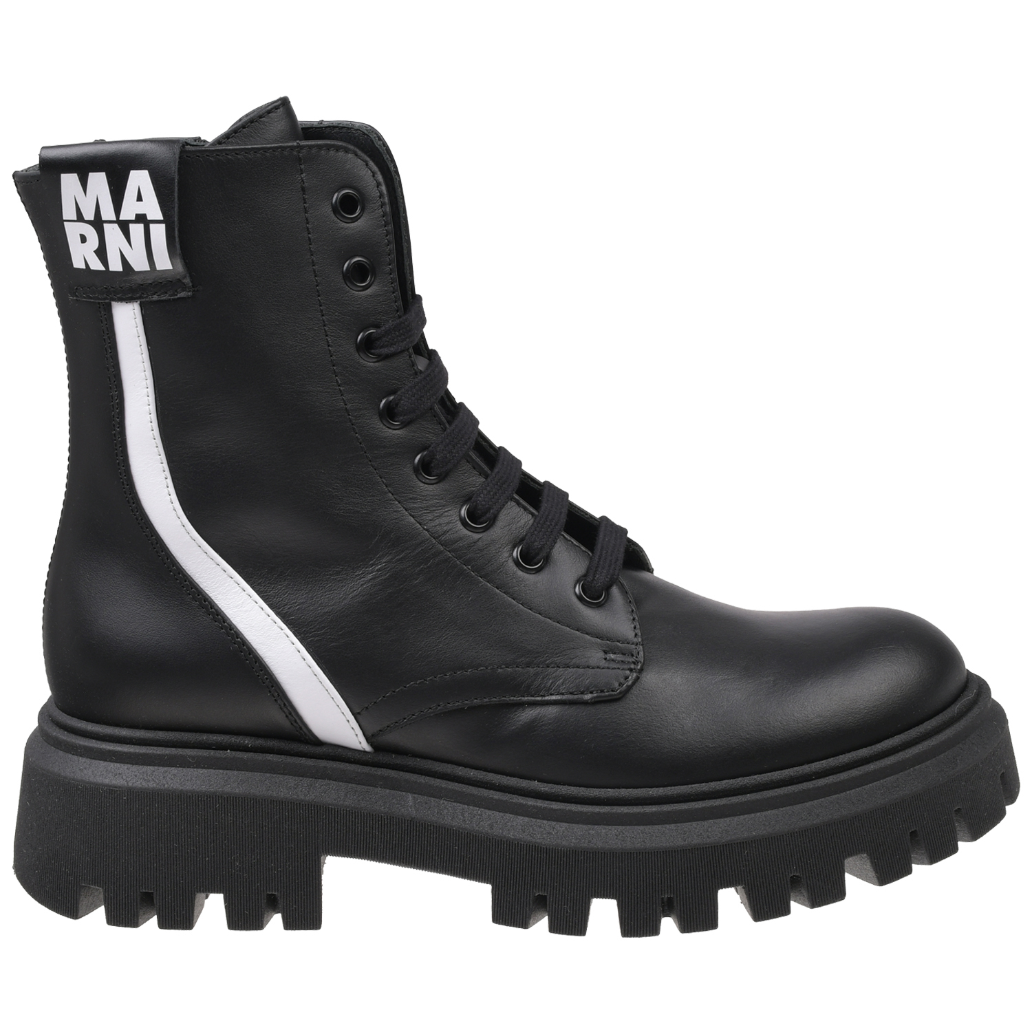 Главная / Девочки / Обувь / Ботинки / Ботинки демисезонные / MARNI / Высокие ботинки с белой полосой, черные