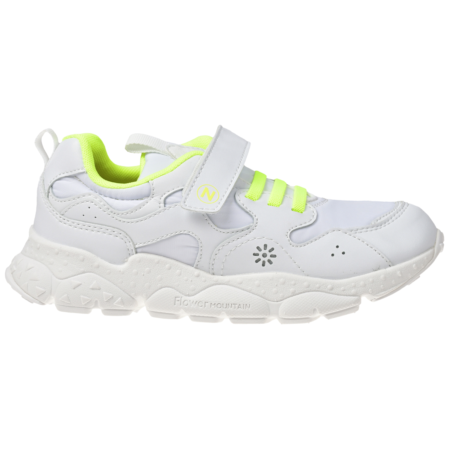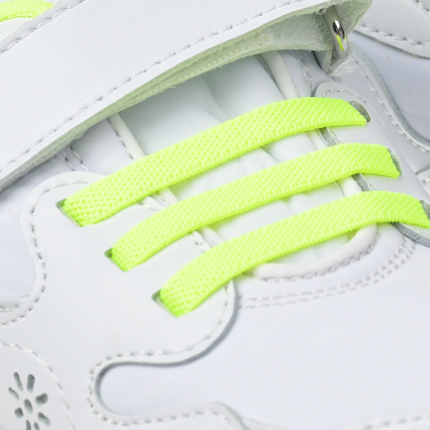 Белые кроссовки со шнурками салатового цвета