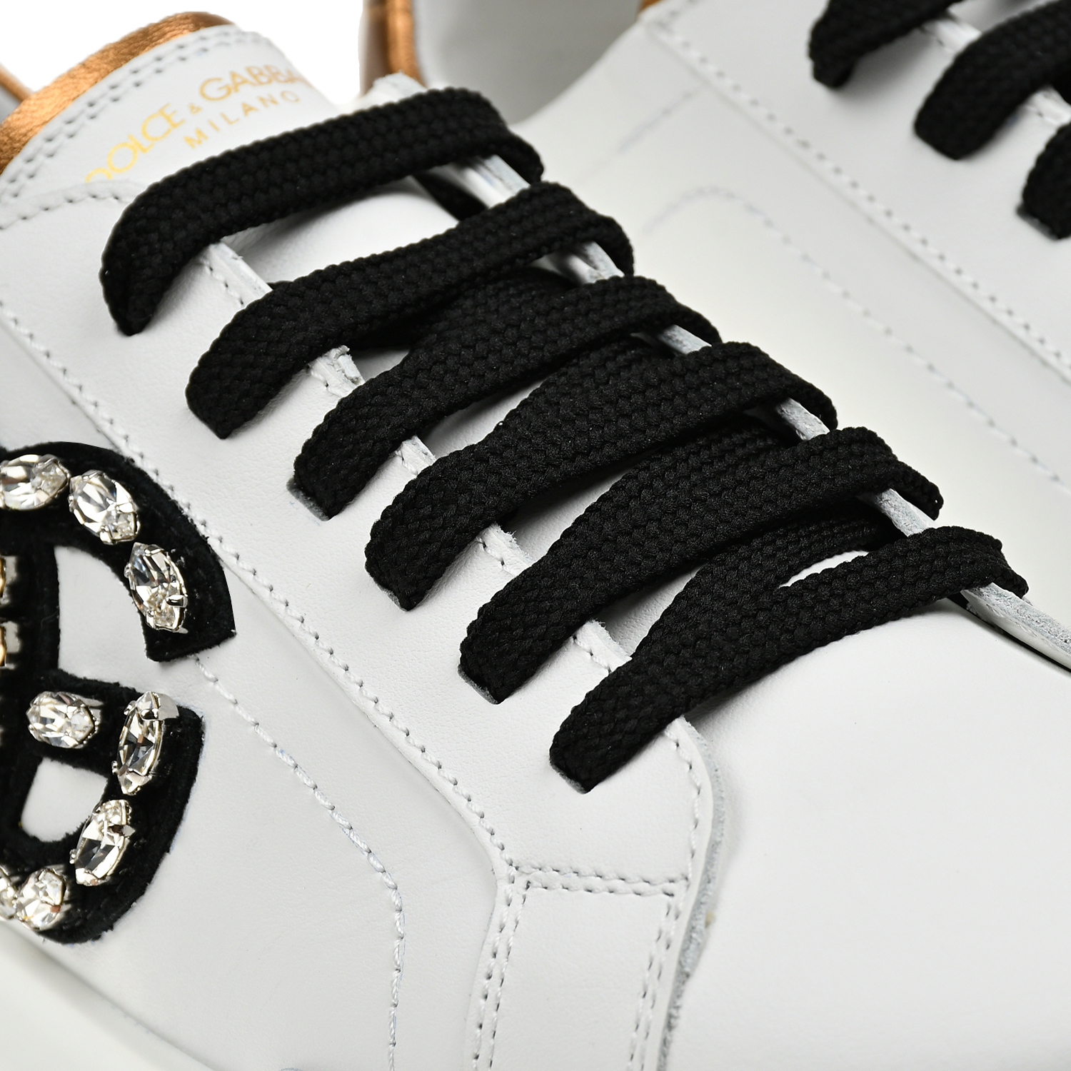 Главная / Девочки / Обувь / Кроссовки, Кеды / Dolce&Gabbana / Кеды с эластичными шнурками и логотипом с камнями, белые