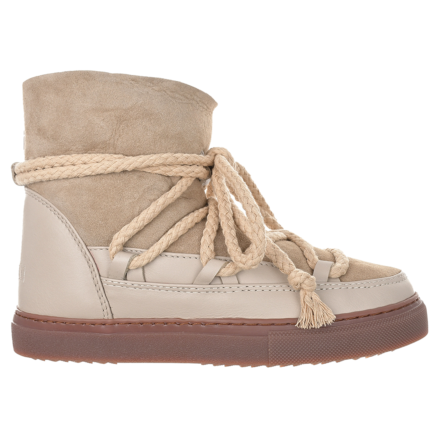 Визитной карточкой бренда INUIKII стали сшитые вручную луноходы на запатентованной каучуковой подошве. Каждый сезон компания обновляет классическую модель, используя глиттер, ткани с принтом, этническую вышивку или меховую отделку.