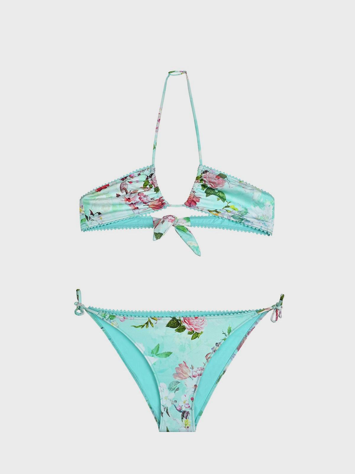 Купальник с цветочным прнитом, мятный