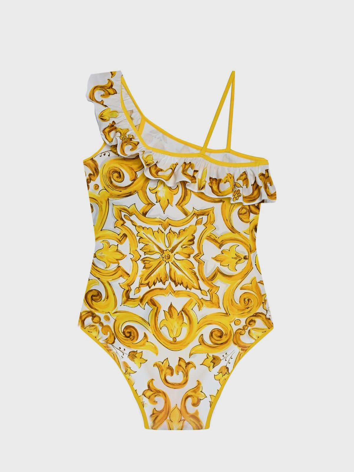 Главная / Девочки / Одежда для пляжа / Шарфы / Dolce&Gabbana / Купальник с принтом "майолика", желтый