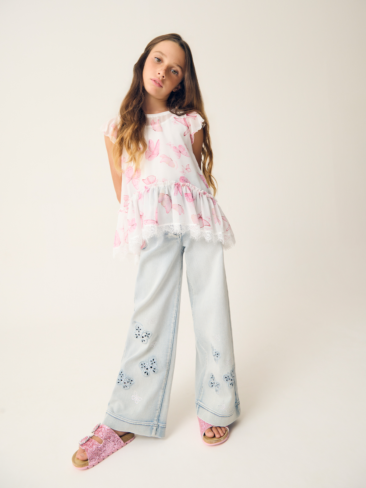 Главная / Девочки / Одежда / Блузы, Рубашки, Туники / MonnaLisa / Блуза с принтом "бабочки"