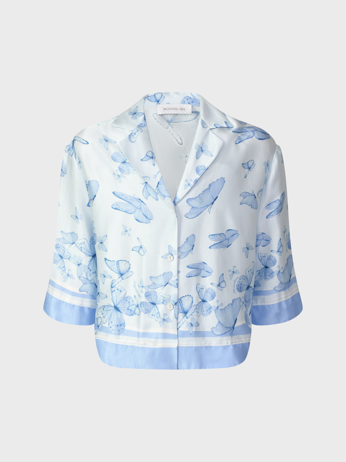 Главная / Девочки / Одежда / Блузы, Рубашки, Туники / MonnaLisa / Рубашка с принтом "бабочки", голубая