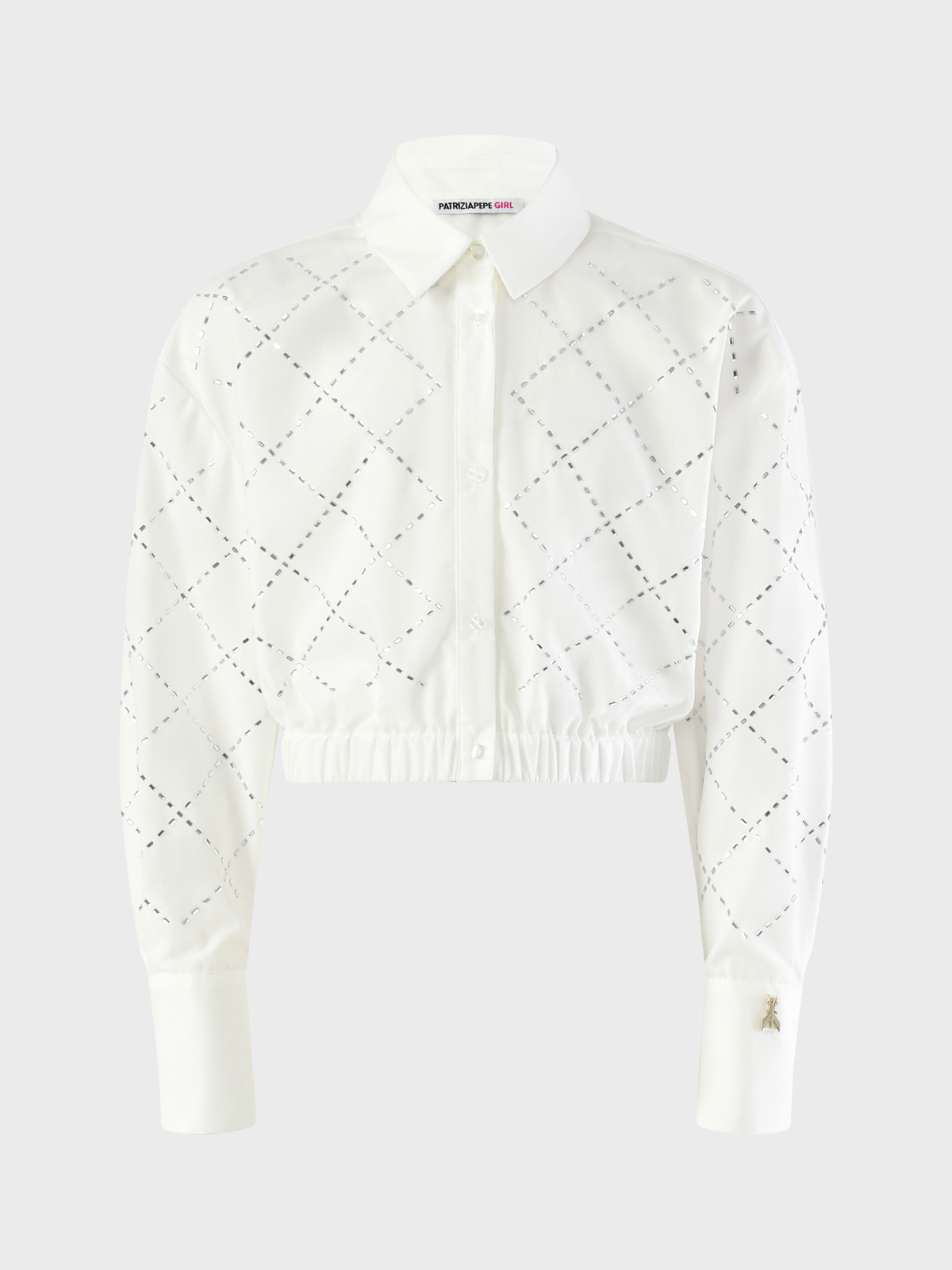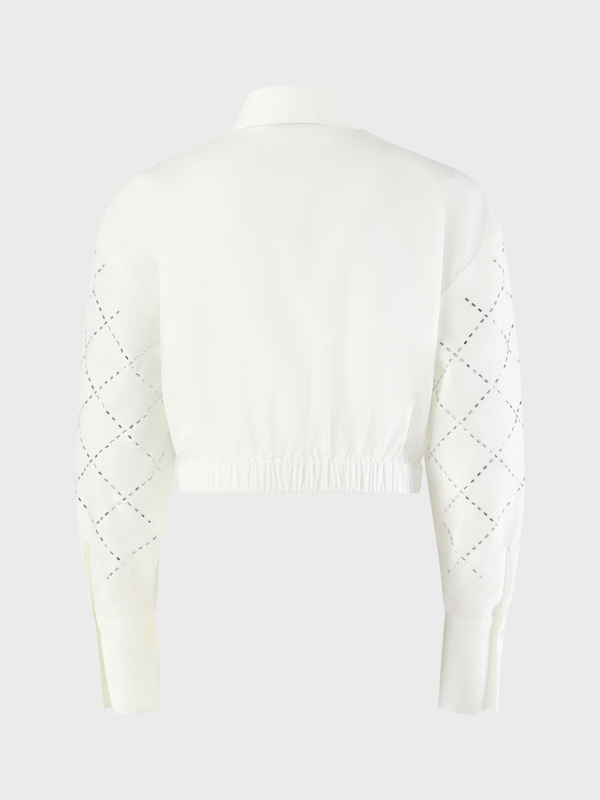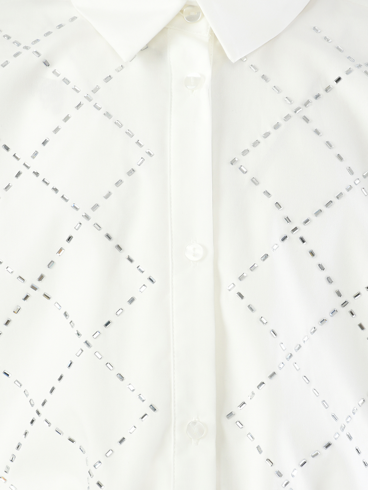 Рубашка укороченная в стразах, белая