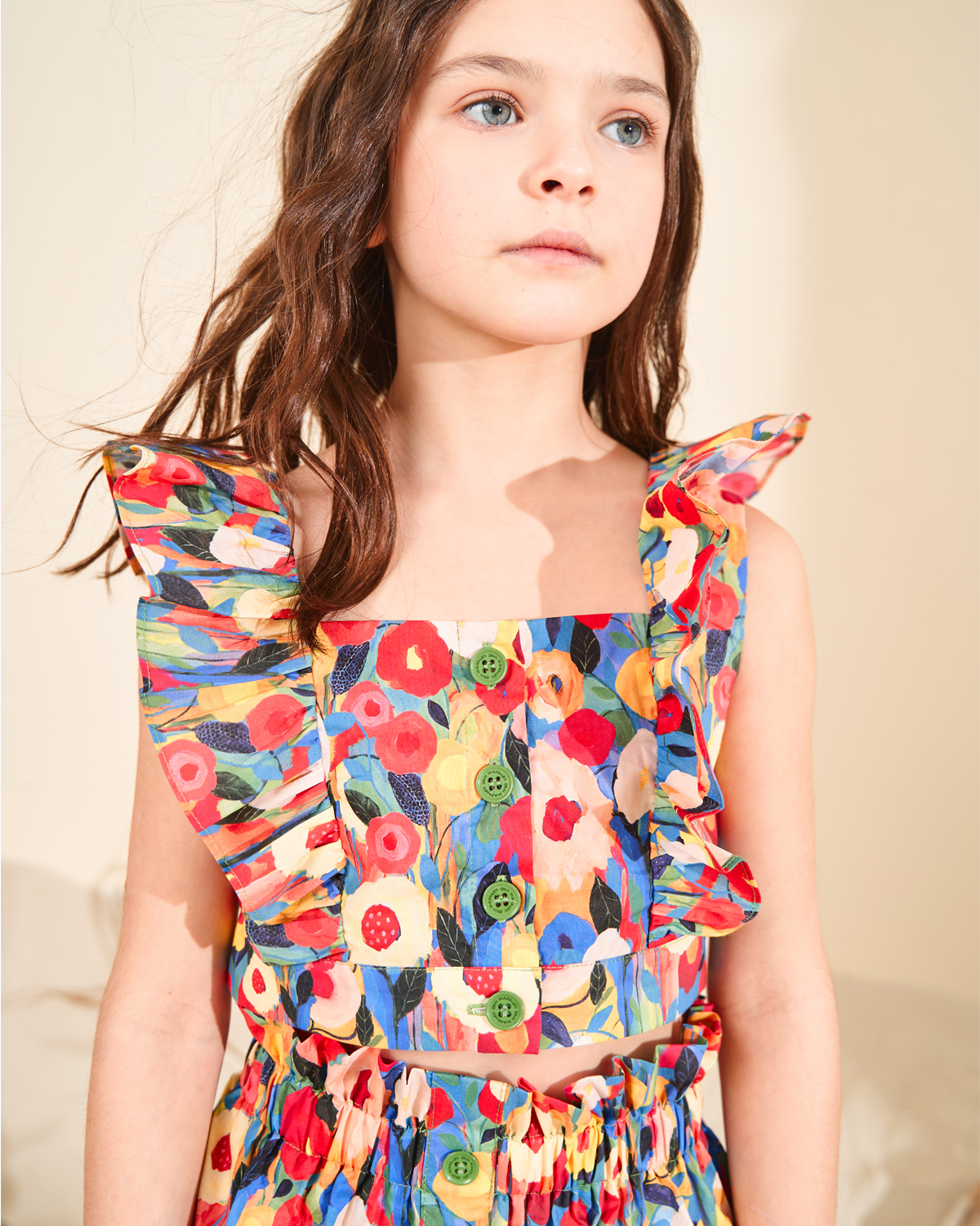 Топ на бретелях с рюшами принт Моне, разноцветный