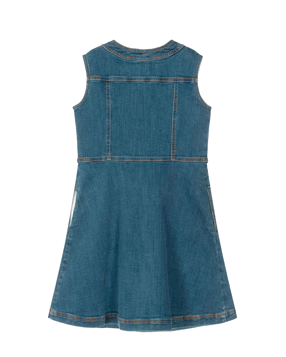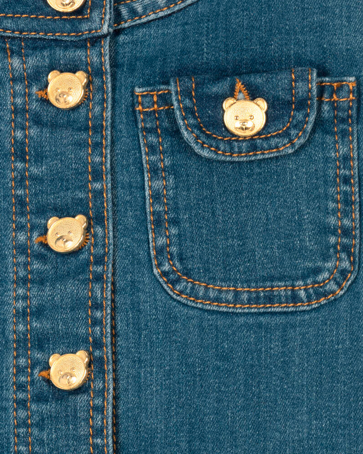 Джинсовое платье с золотистыми пуговицами в виде мишек