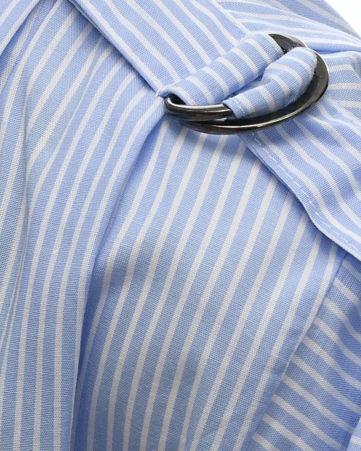 Платье-рубашка голубого цвета в полоску выполнено из 100% хлопка. Модель прямого кроя и без рукавов застегивается на пуговицы спереди. Материал отлично дышит и не вызывает аллергии. Акцентой деталью являются белые рисунки спереди.