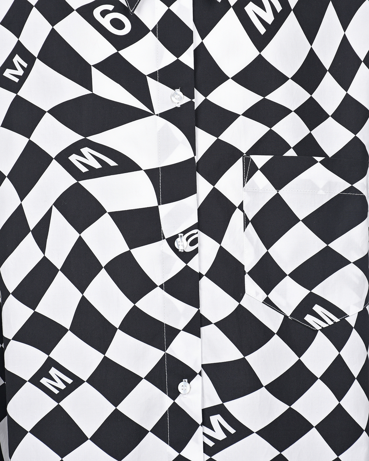 Платье-рубашка со сплошным шахматным принтом и лого. Натуральный хлопковый материал свободно пропускает воздух. Модель с отложным воротником и длинными рукавами застегивается на пуговицы. Дизайн дополняет накладной карман на груди.