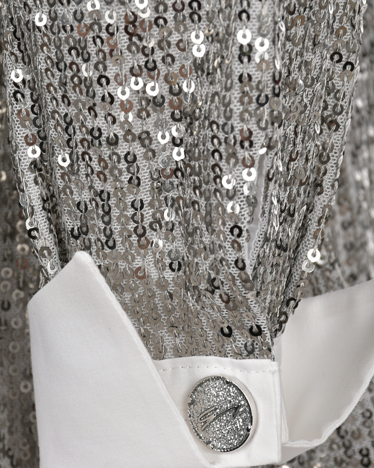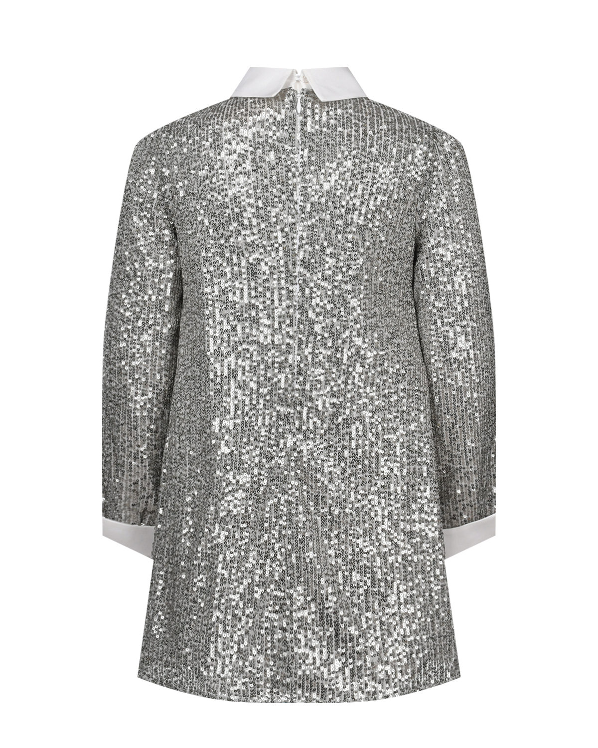 Платье с пайетками и белым воротником, серебристое