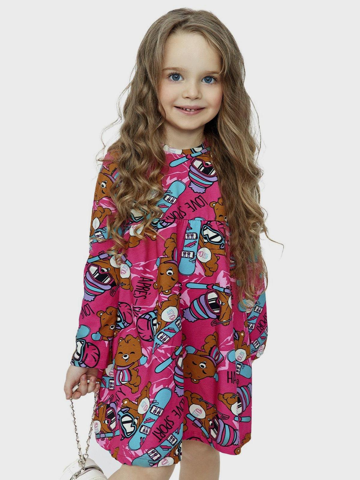 Платье с принтом мишки на сноубордах, фуксия