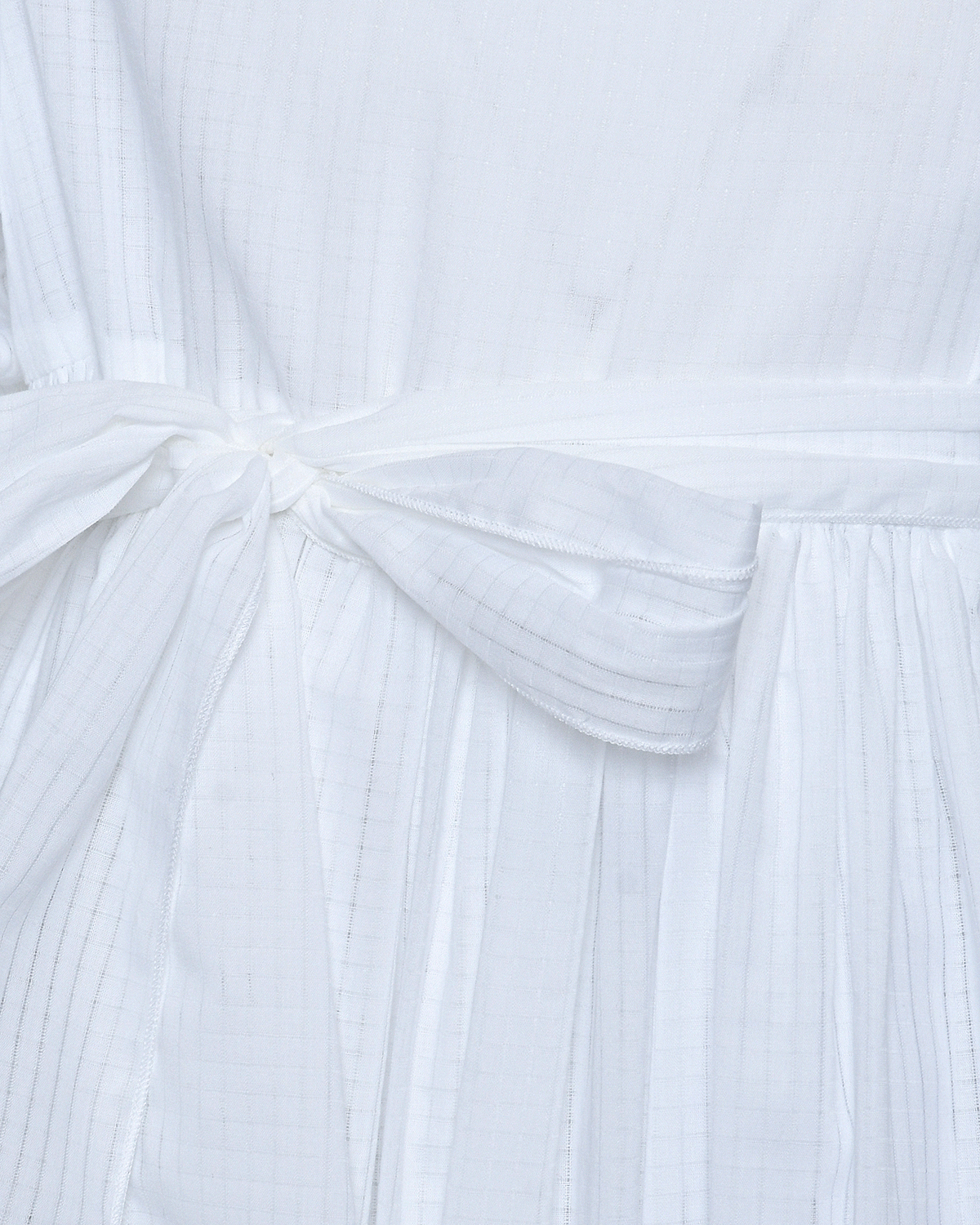 Платье в мелкую клетку и бантом на поясе, белое