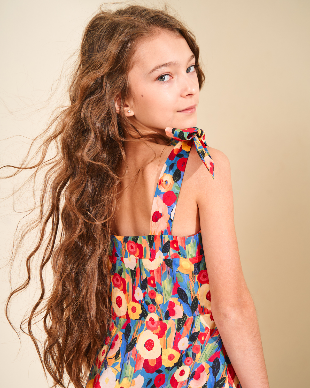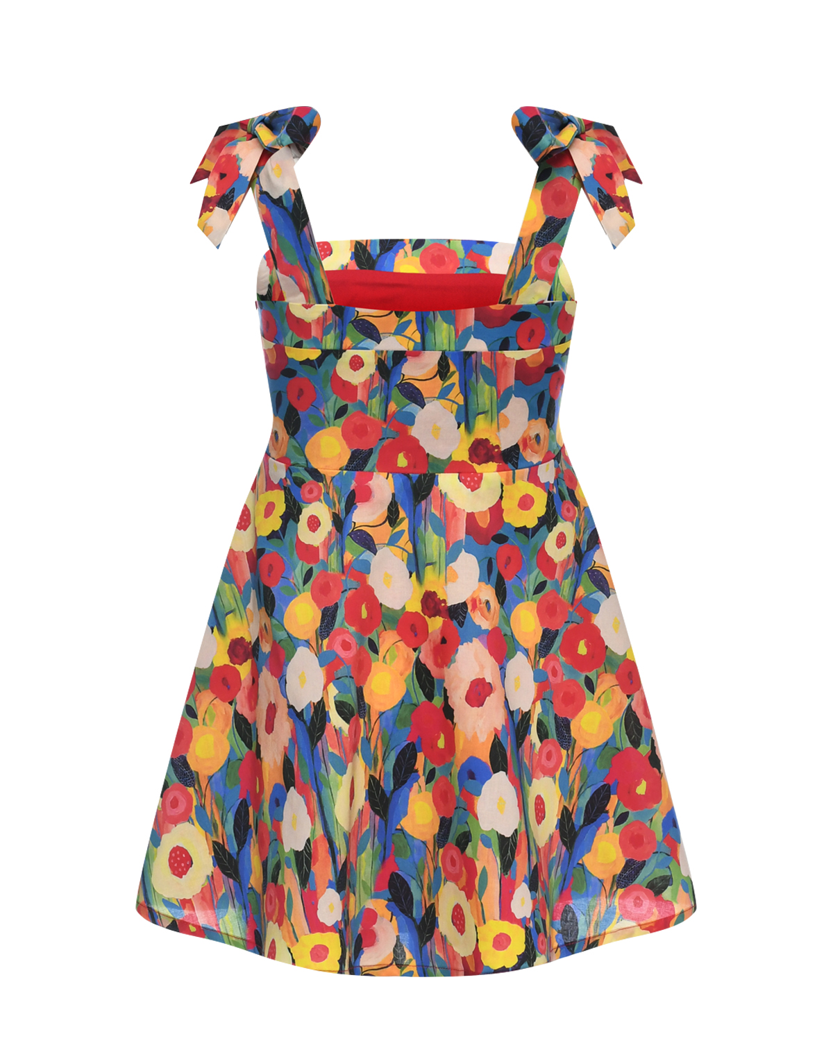 Сарафан на бретелях с бантами принт Моне, разноцветный