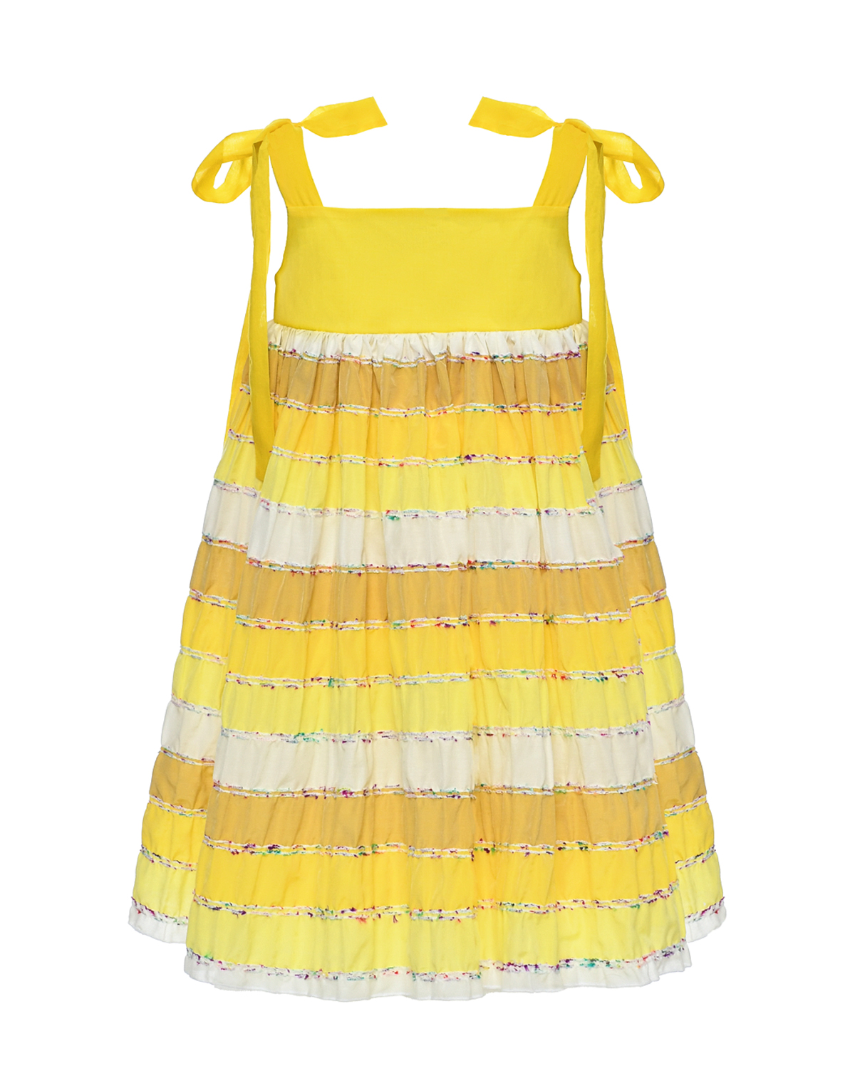 Сарафан в полоску с лямками на завязках, желтый