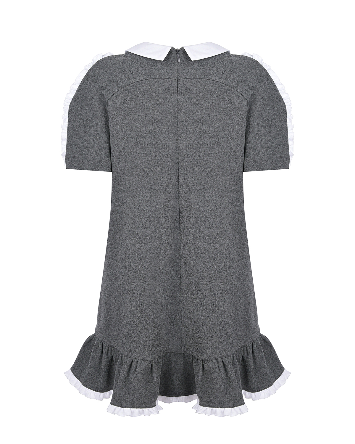 Серое платье из трикотажа с оборками