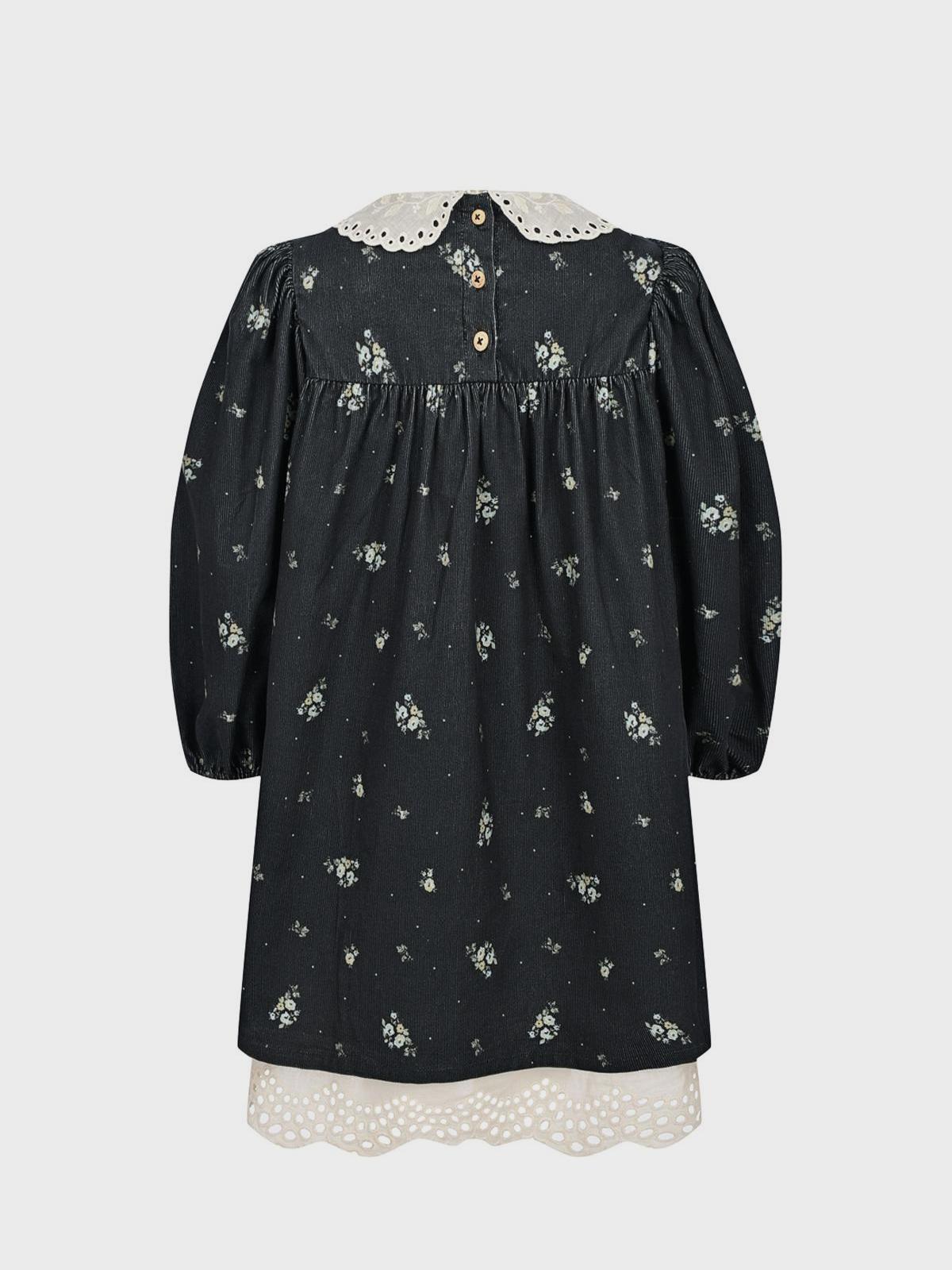 Вельветовое платье с белым воротником и подолом