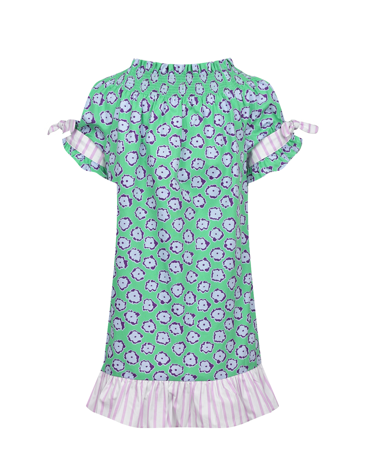 Зеленое платье со сплошным цветочным принтом