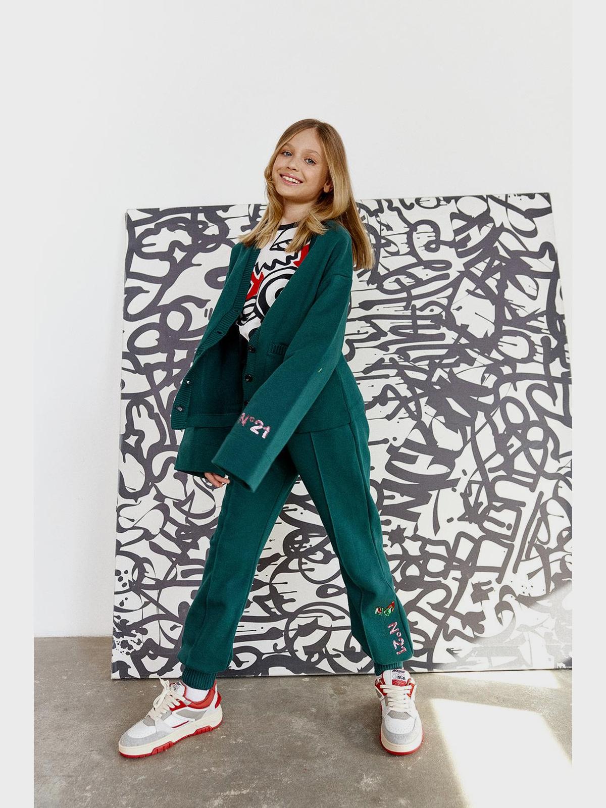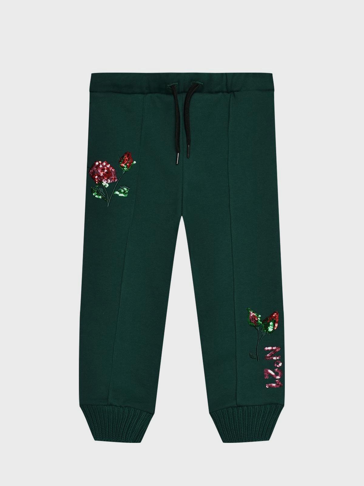Спортивные брюки с цетами из пайеток, зеленые