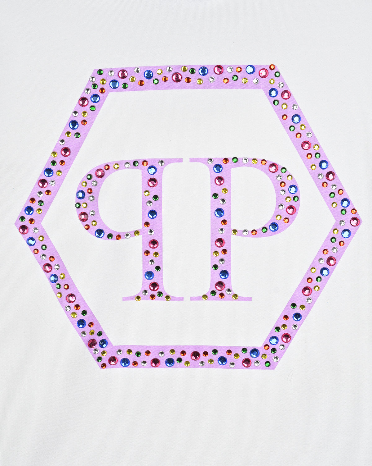 Белая толстовка-худи с лого из страз