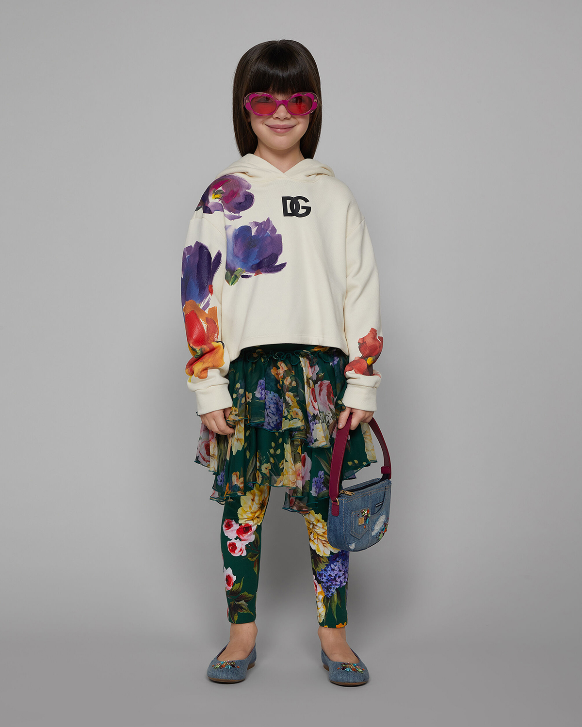 Главная / Девочки / Одежда / Толстовки, Свитшоты / Dolce&Gabbana / Толстовка-худи с акварельным цветочным принтом