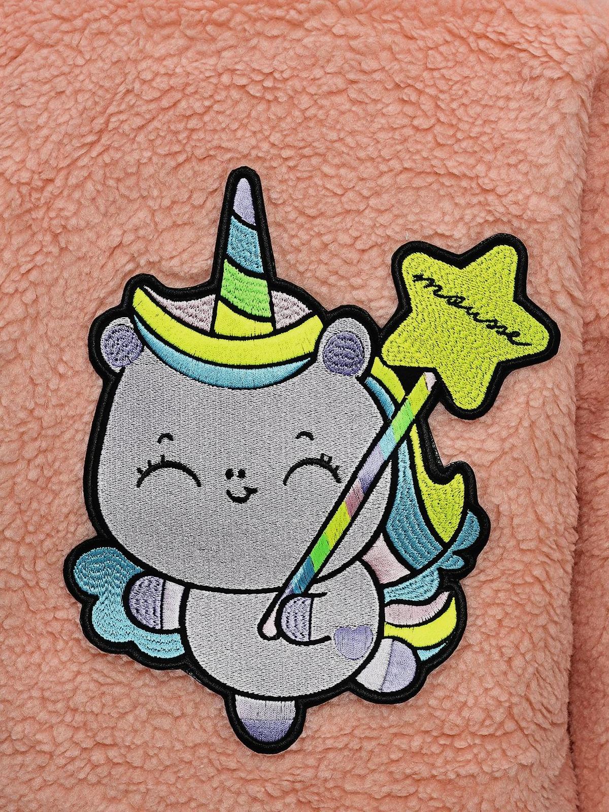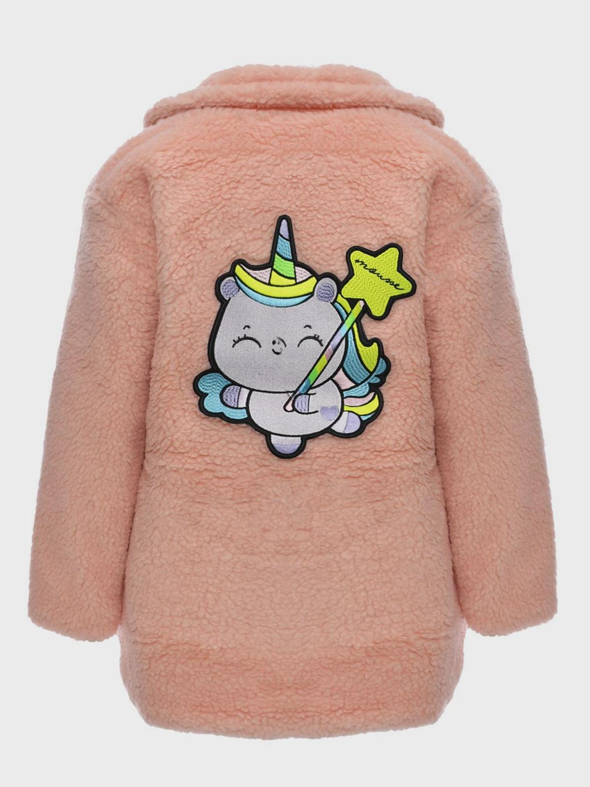 Шуба из эко-меха с принтом на спине, светло-розовая