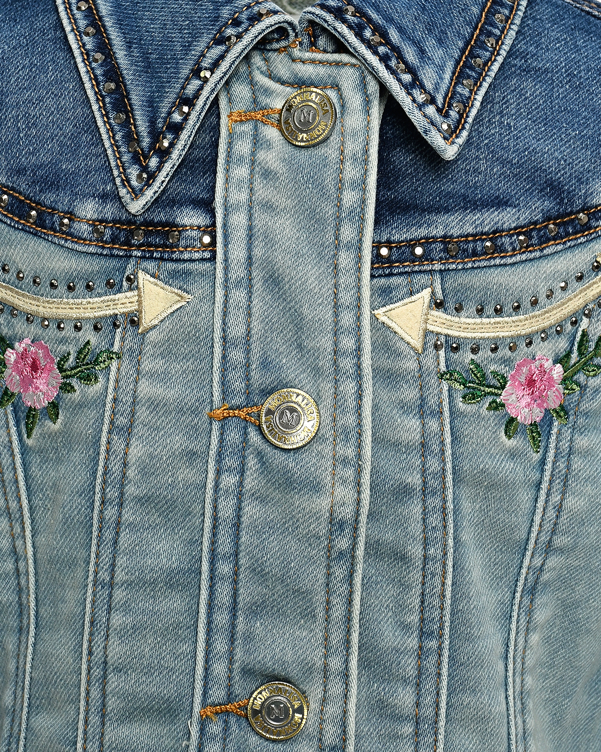 Главная / Девочки / Верхняя одежда / Джинсовые куртки и жилеты / MonnaLisa / Куртка джинсовая со стразами и цветами