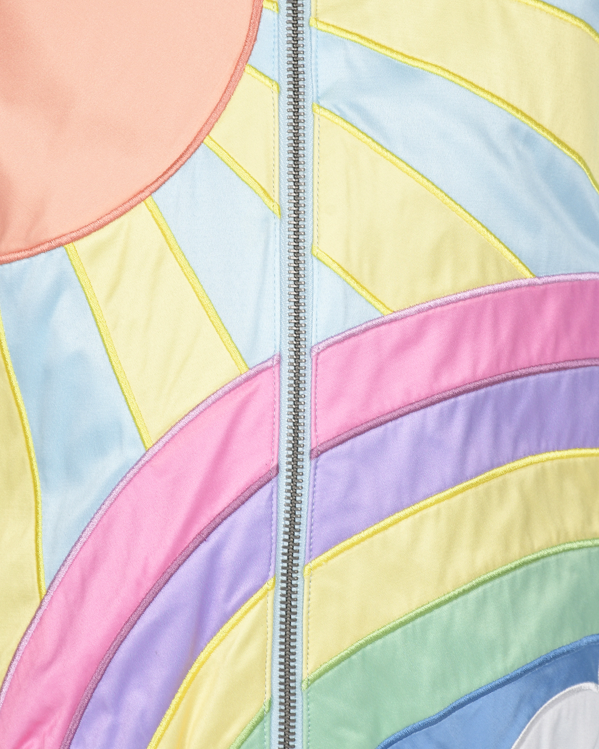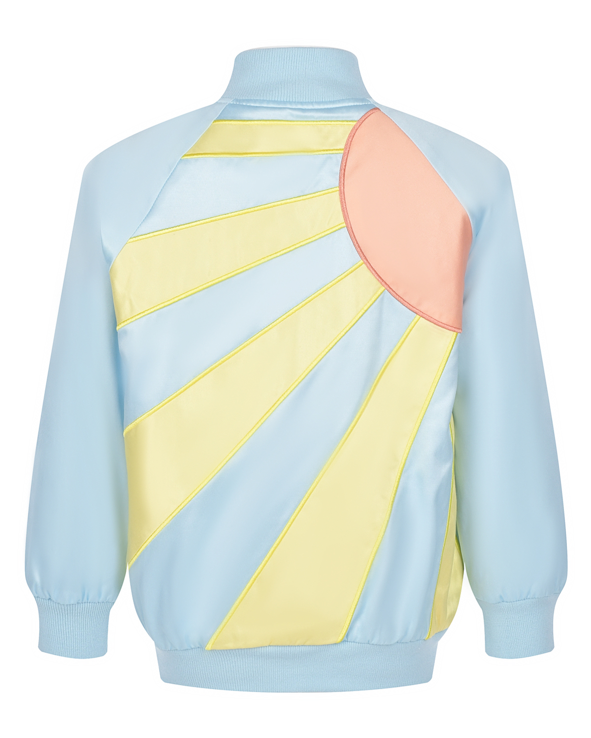 Голубая куртка-бомбер с декором "солнце и радуга"
