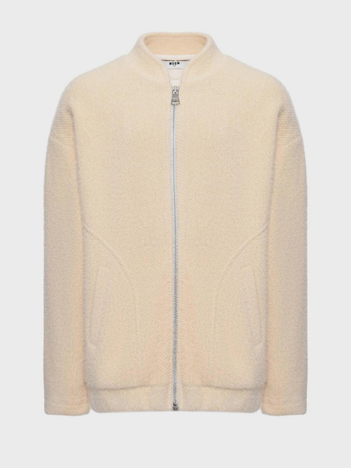 Куртка-бомбер с лого в тон, кремовая